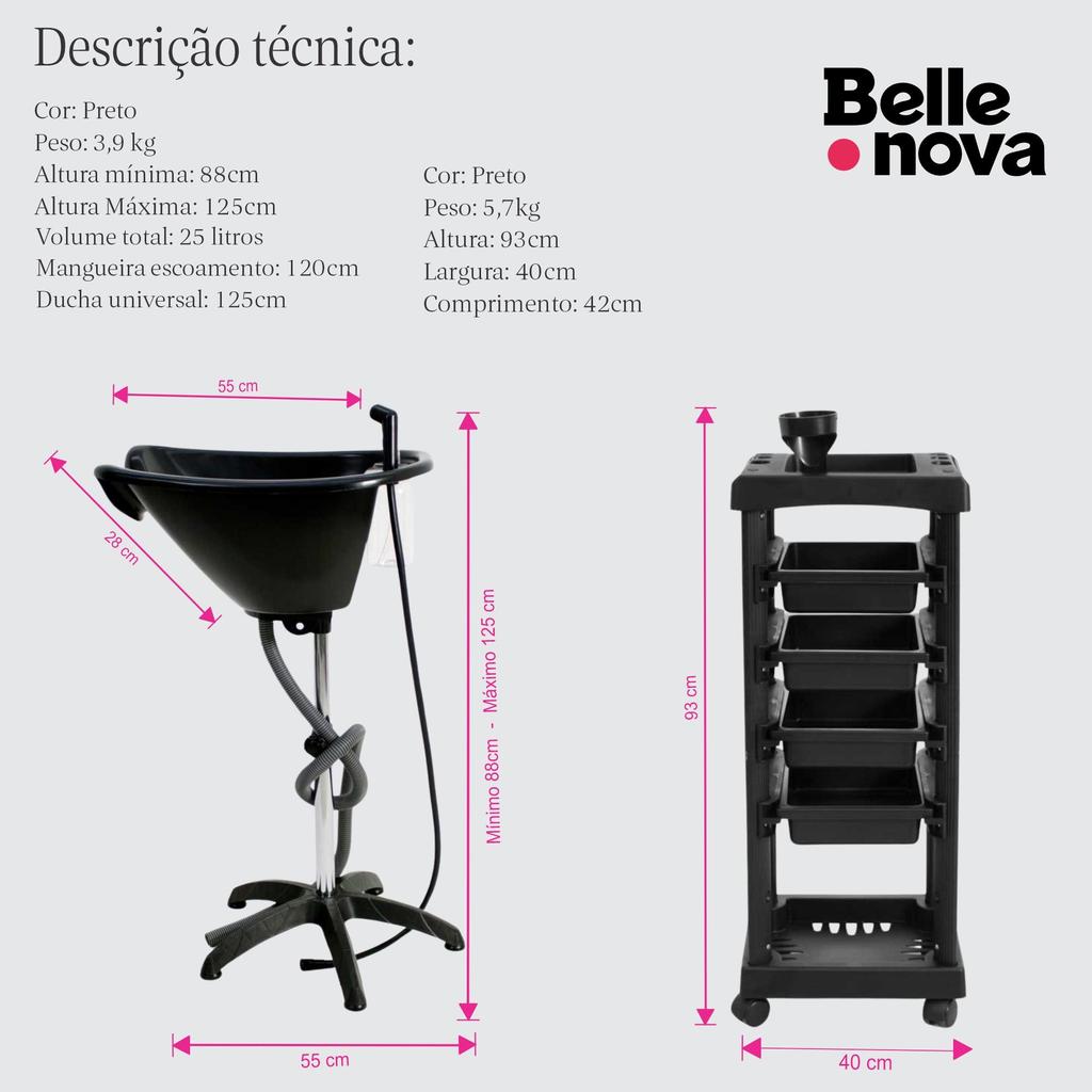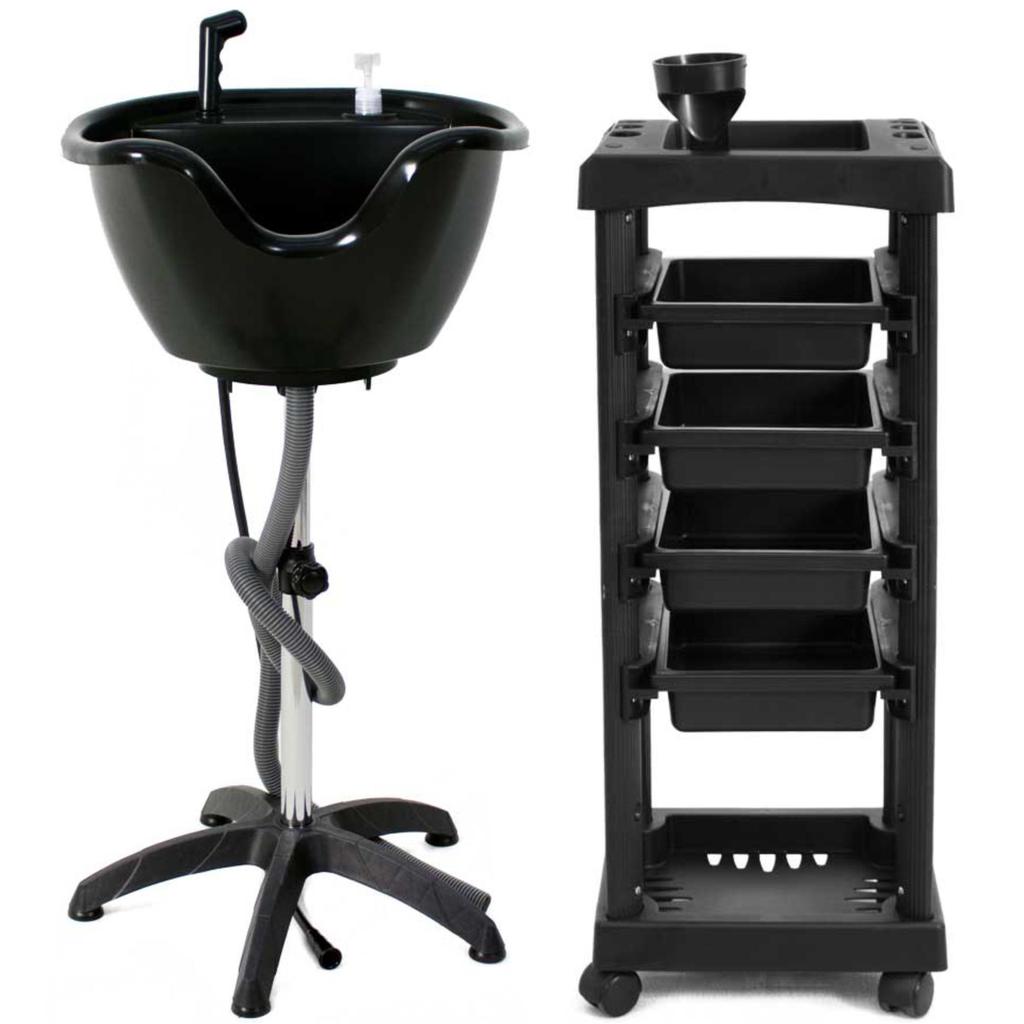 kit salão Lavatório de cabelo Portátil + Carrinho Multiuso