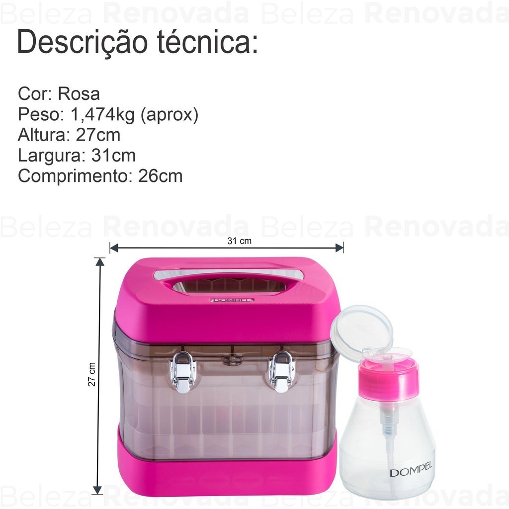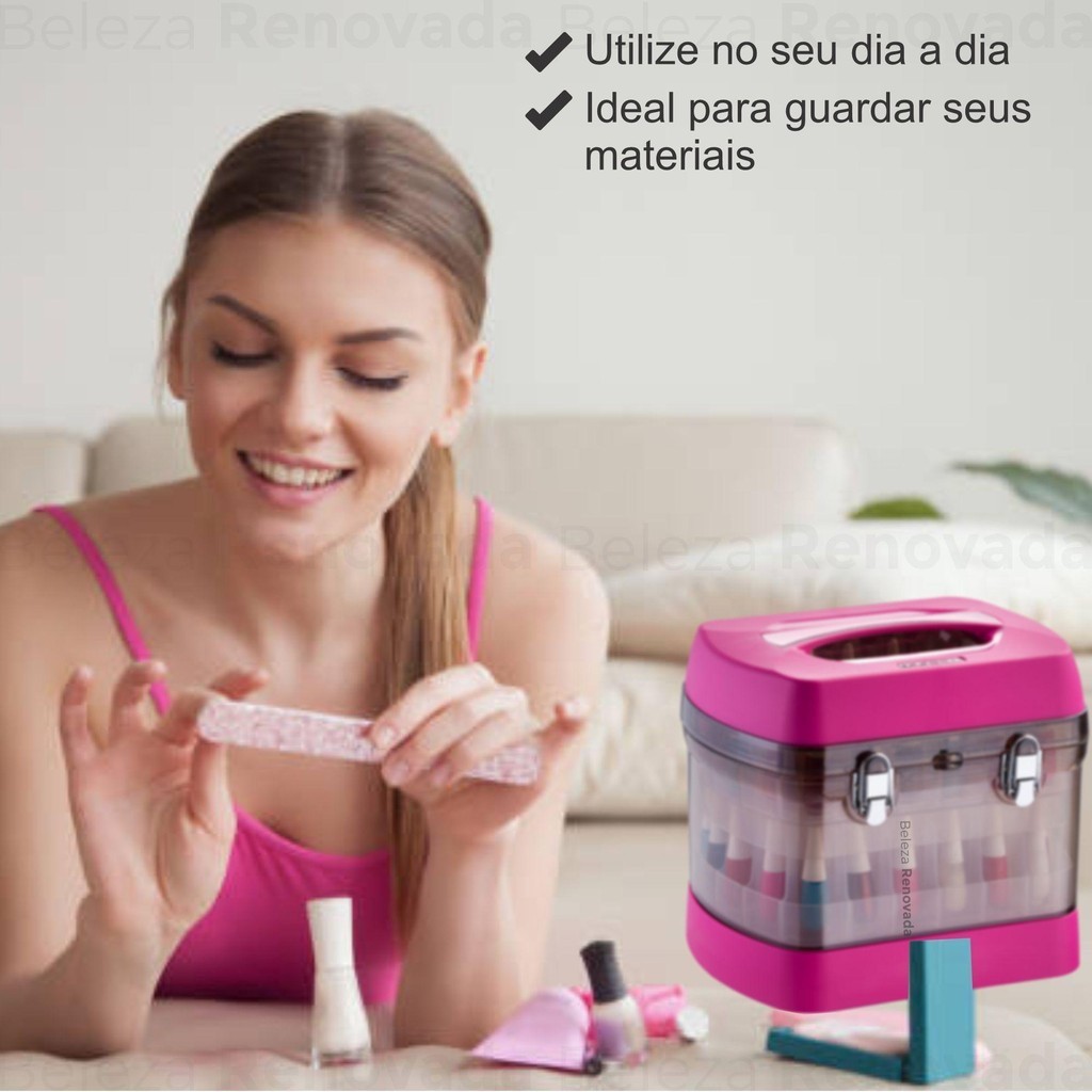 Maleta Manicure Organizadora Rosa + Porta Acetona
