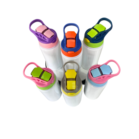 1/2/3/4 Garrafa Infantil Alumínio 600ml para Sublimação | Tampa Automática | Diversas Cores + Caixinha Individual