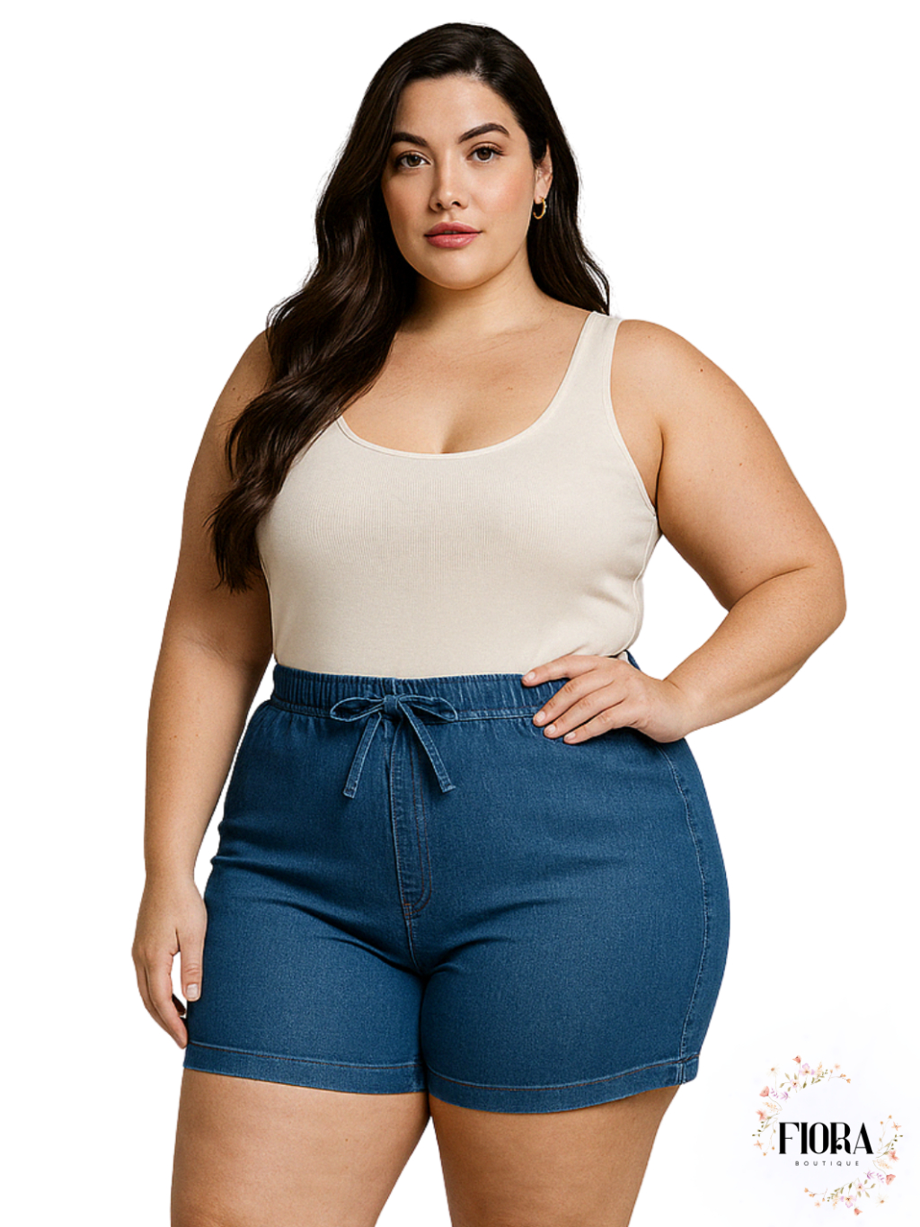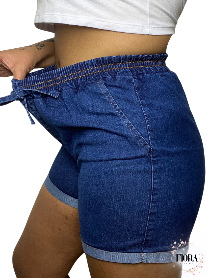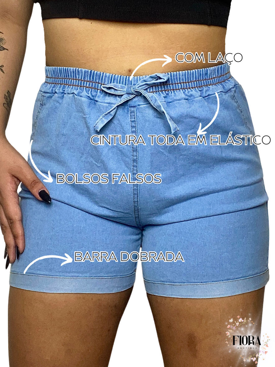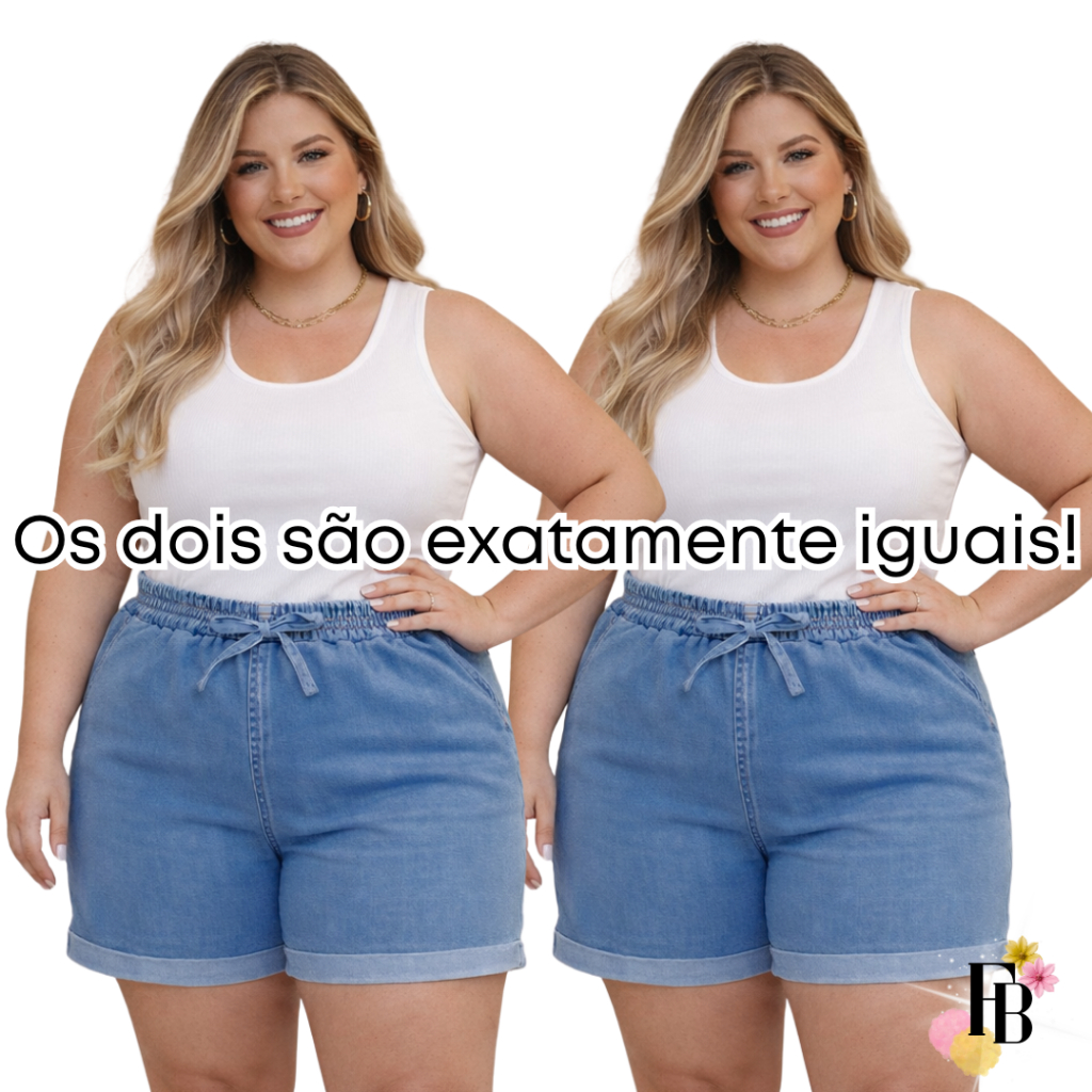 Kit 2 Shorts Jeans Feminino Do 42 Ao 56 Plus Size Com Lycra Cintura Alta Laço Verão Confortavel