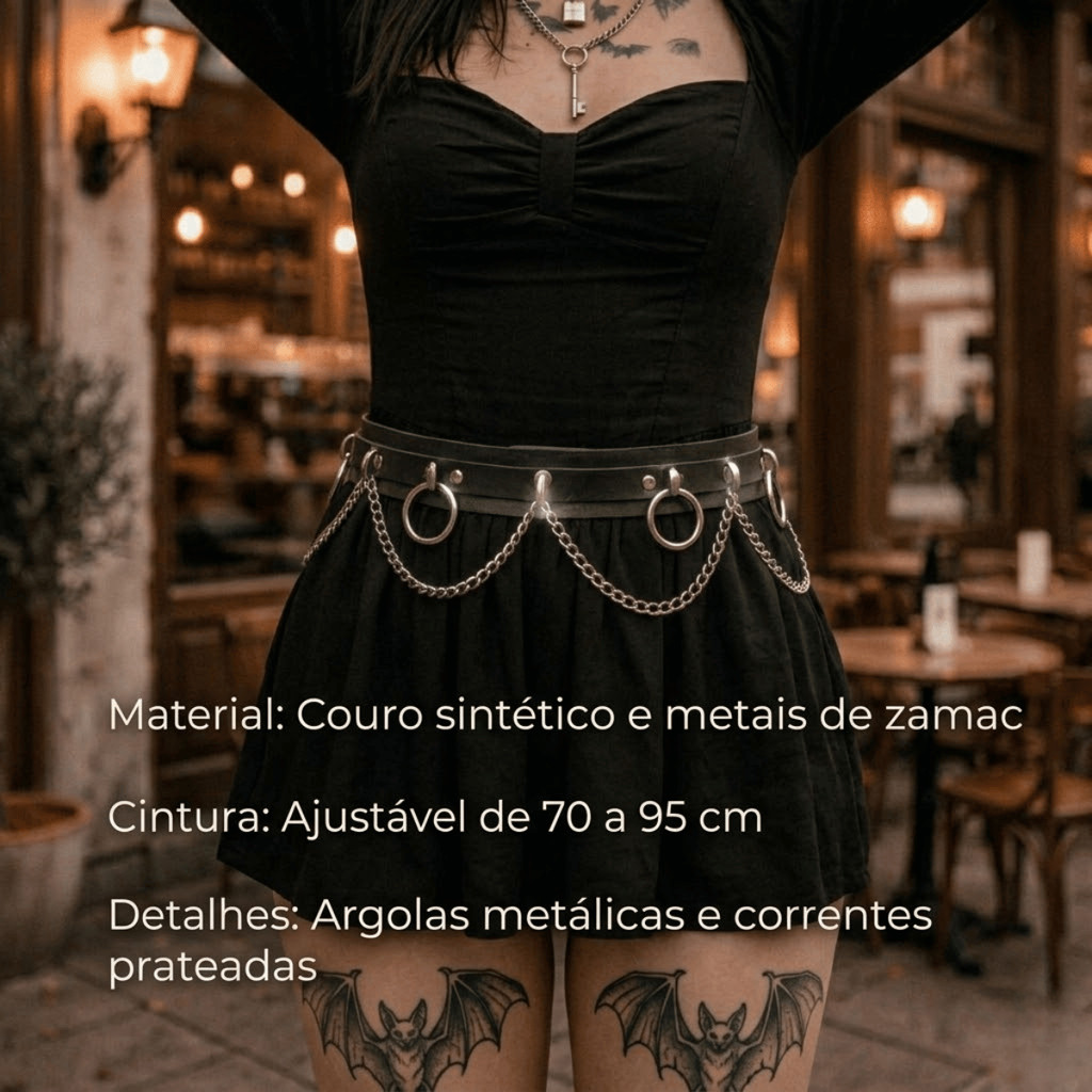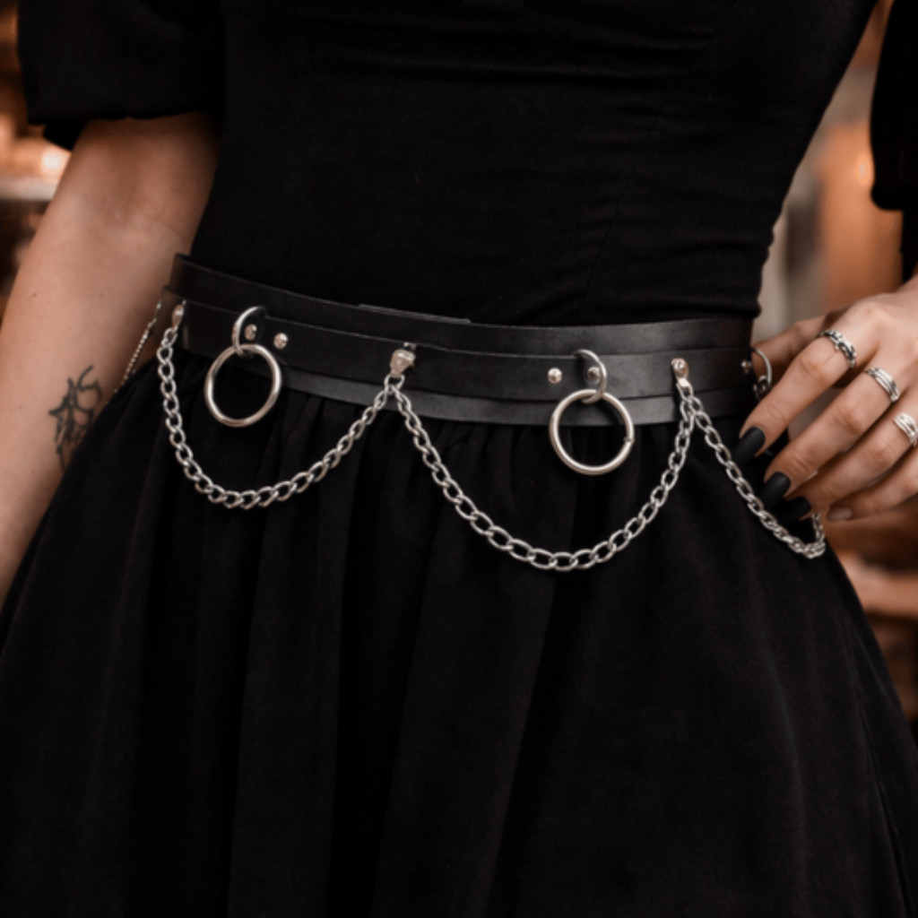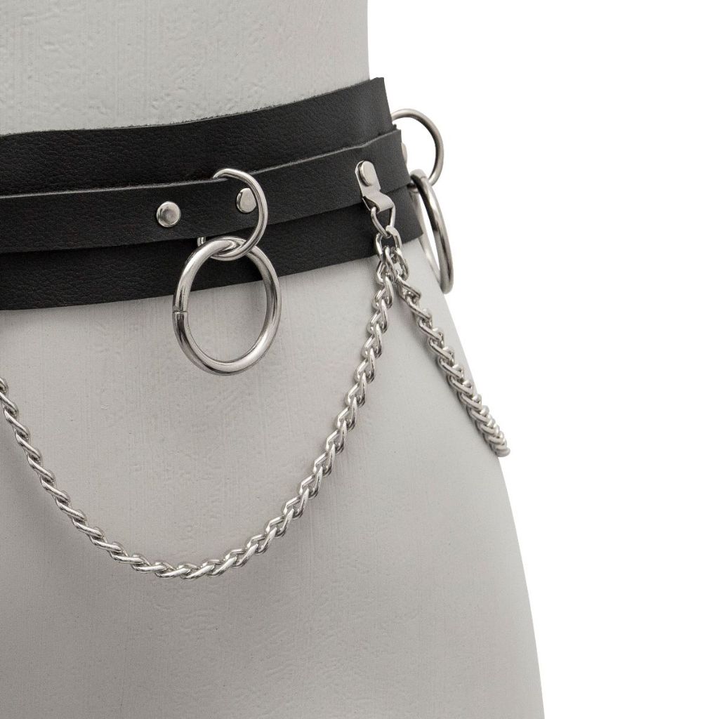 Cinto Couro Sintético com Corrente Argola para Mulheres Alternativa Punk Rock Gótico Off