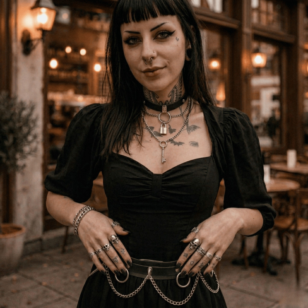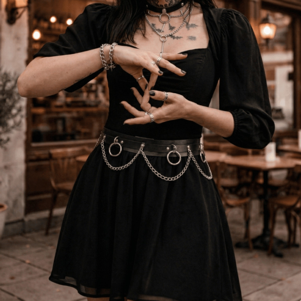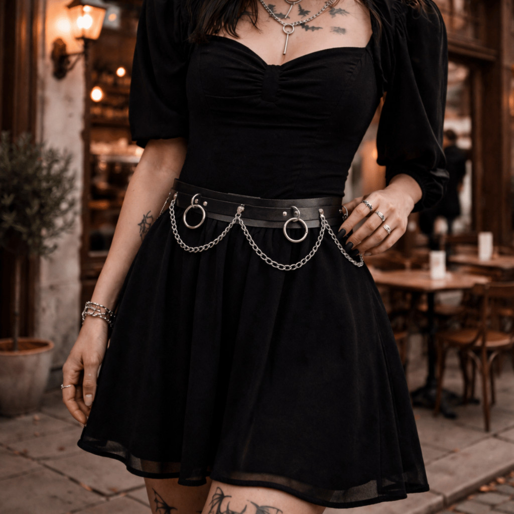 Cinto Couro Sintético com Corrente Argola para Mulheres Alternativa Punk Rock Gótico Off