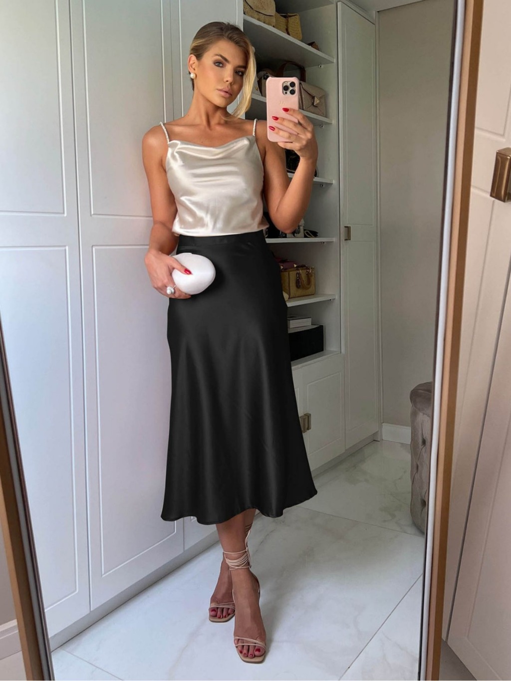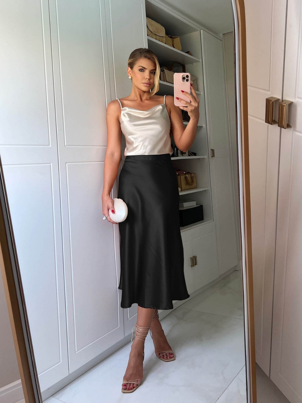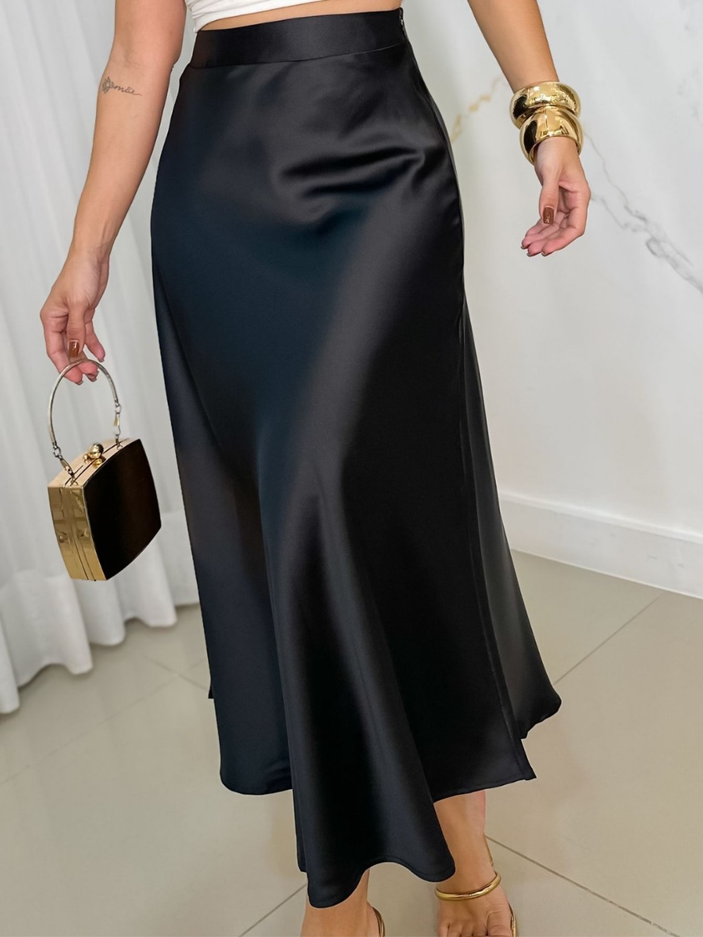EMILI3 - Saia Midi Feminina De Cetim Evasê Fluida-9381