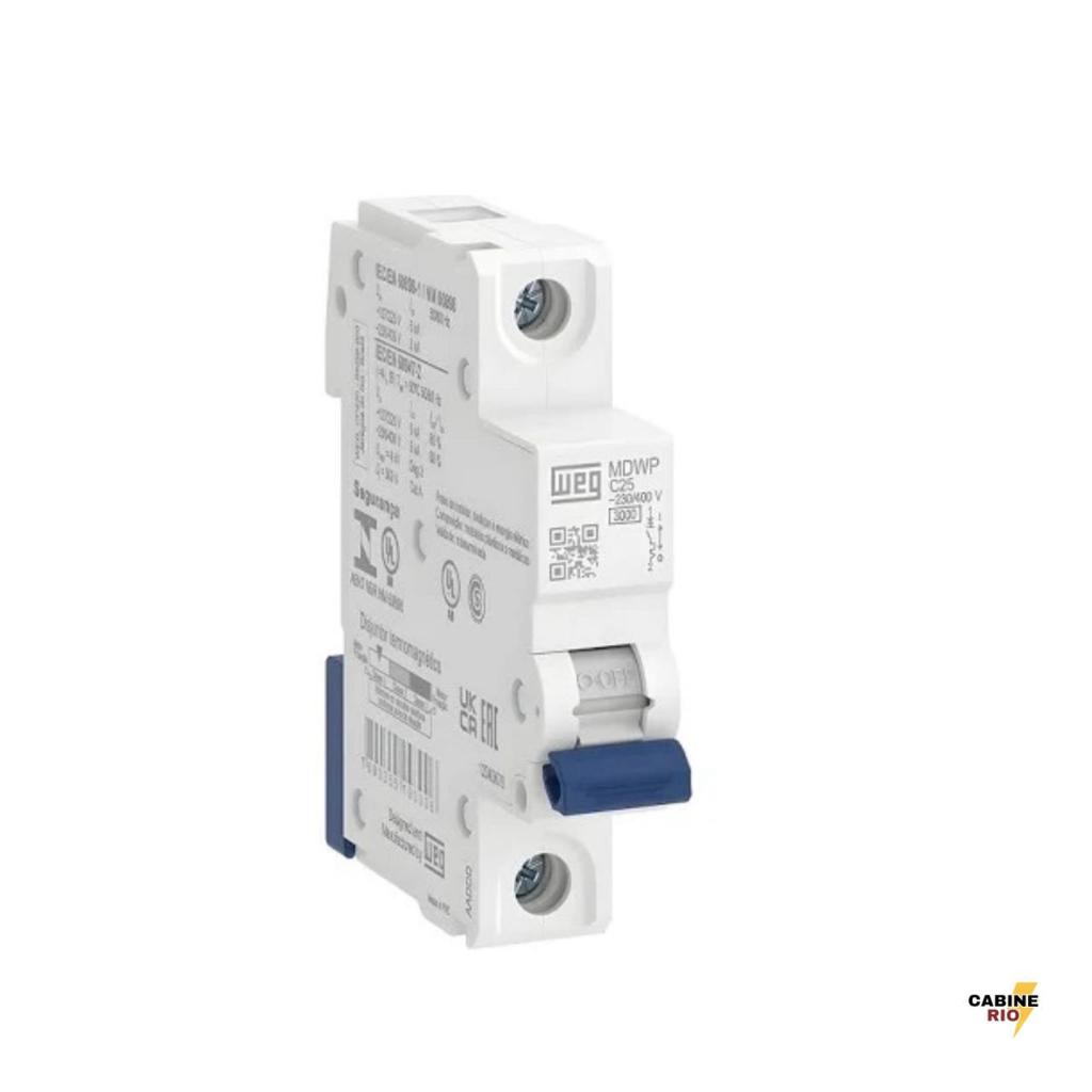 Kit 5x Mini Disjuntor MDWP WEG Unipolar Curva C – 10A/16A/20A/25A/32A/40A/50A/63A