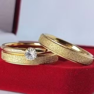 1 par de Alianças de Moeda Antiga Banhado 4mm tradicional+anel solitário