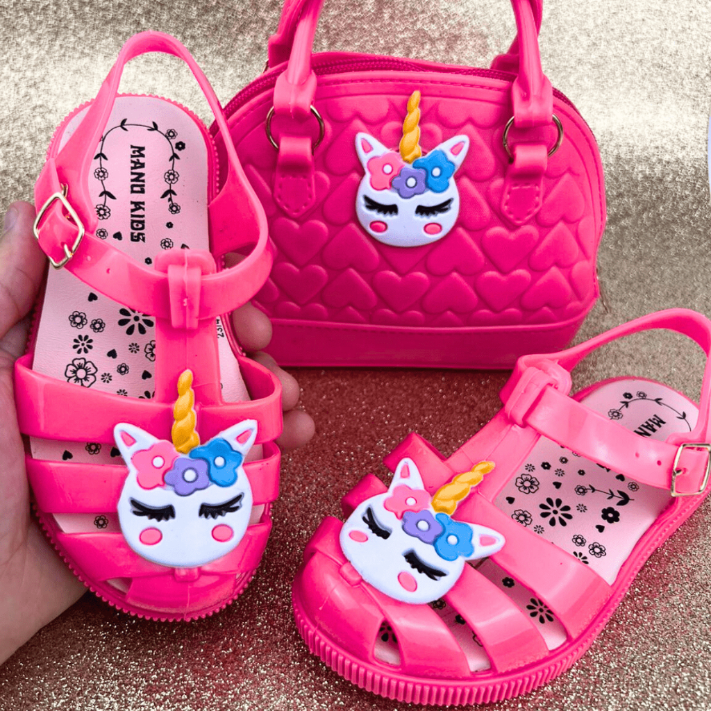 KIT Sandália Infantil Papete Birken e Bolsa Blogueirinha Brilho e Glíter Menina