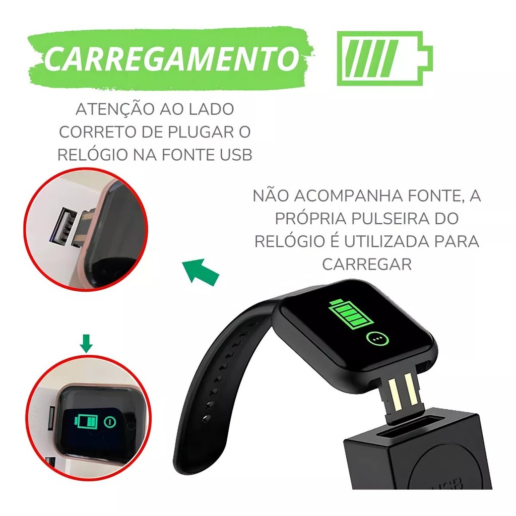 02 Smartwatch Y68 D20 Várias Funções Monitoramento de Frequência Cardíaca