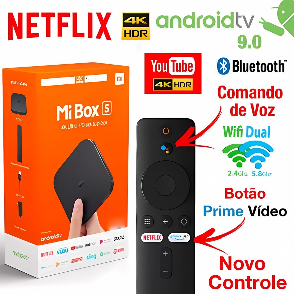 Xiaomi Mi Box S MDZ-28-AA 4K 8GB Preto 2GB RAM com Comando de Voz