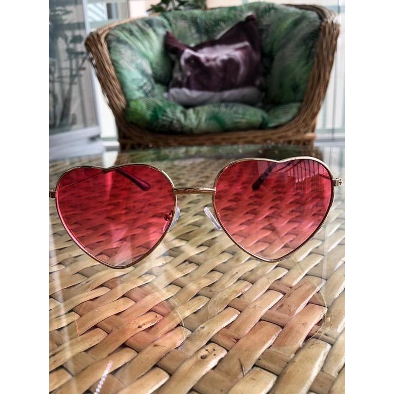 Óculos De Sol Moldura Coração Adulto Lolita Vintage Rosa Avermelhado Pink Estilo Moda Blogueira Mulher Feminina Feminino