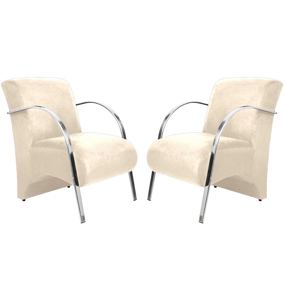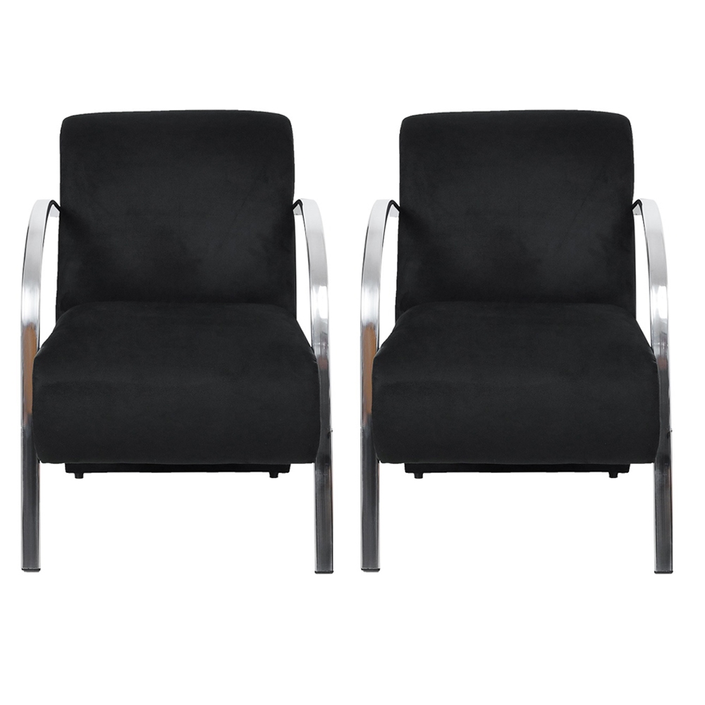 Kit 2 Poltrona Decorativa Predoli Braço de Alumínio Suede, Recepção, Sala, Quarto, Barbeiro, Consultório