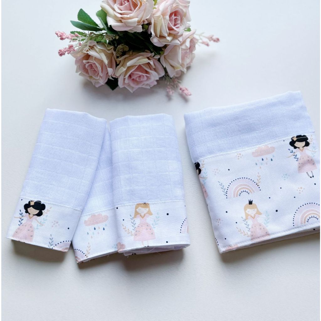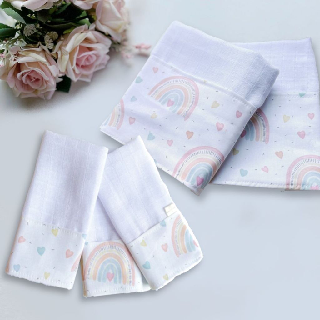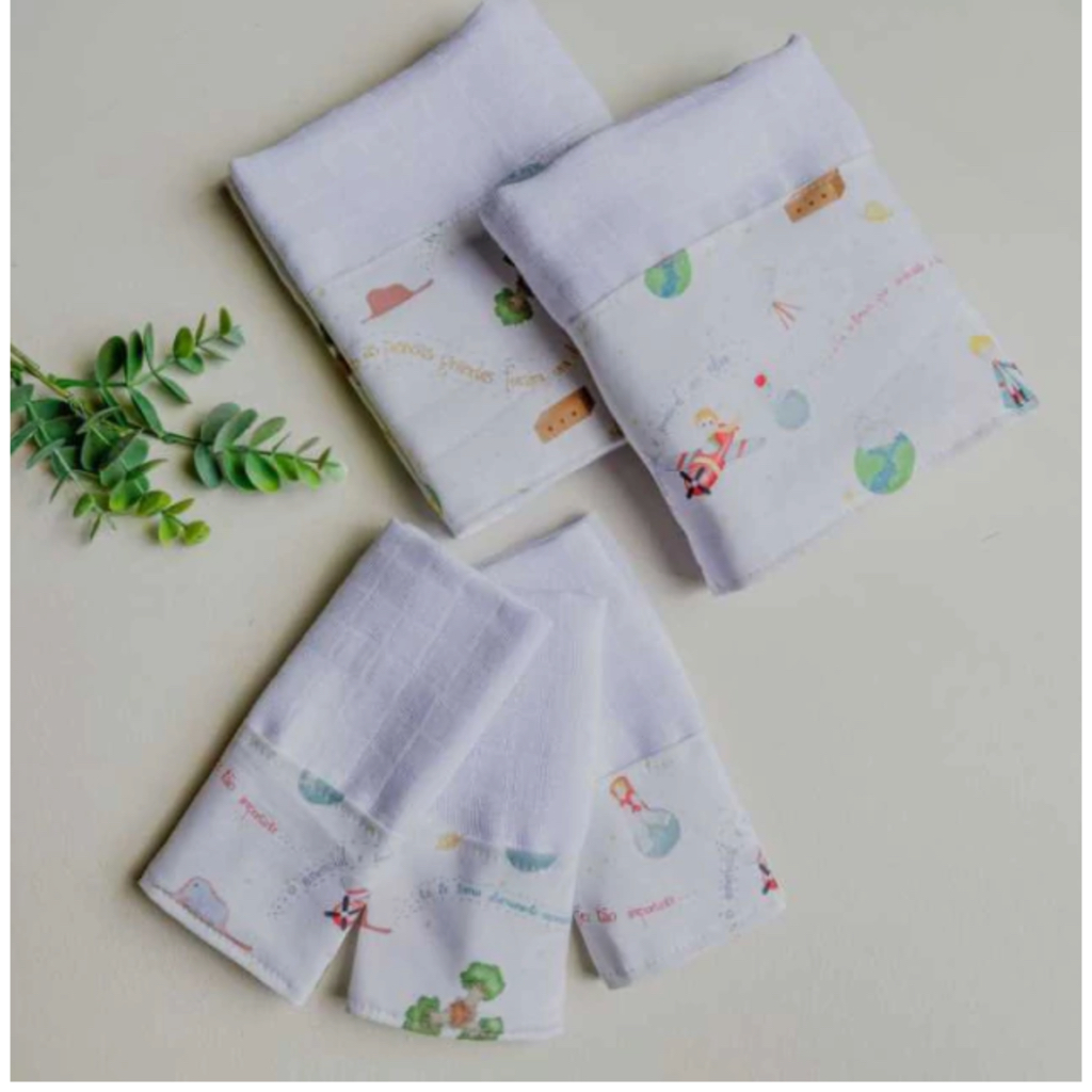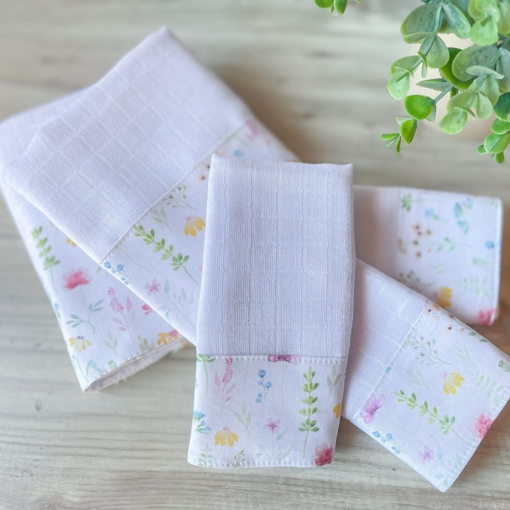 Kit Fraldas de Boca e Ombro Bebê Tricoline 100% Algodão com Saquinho Presenteável Ceci Petit Home