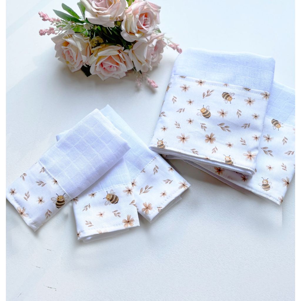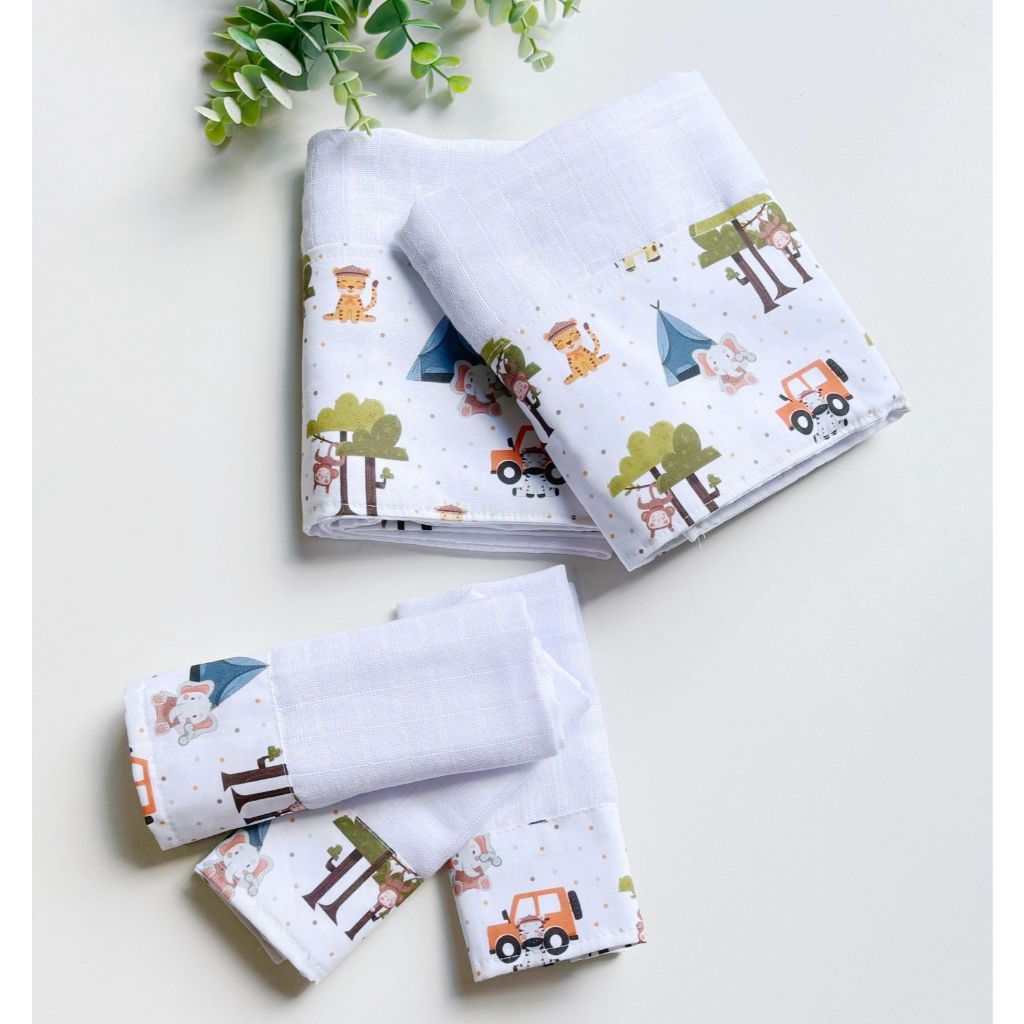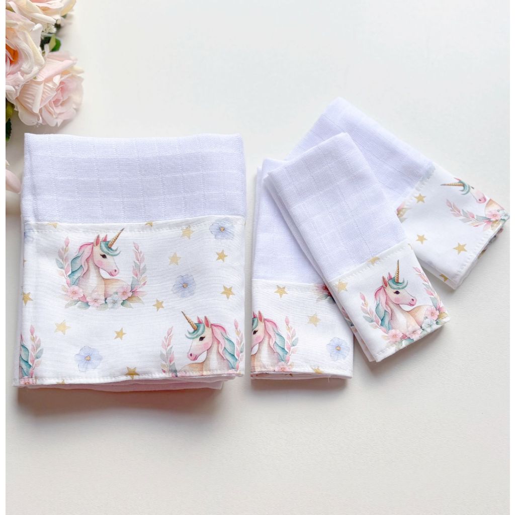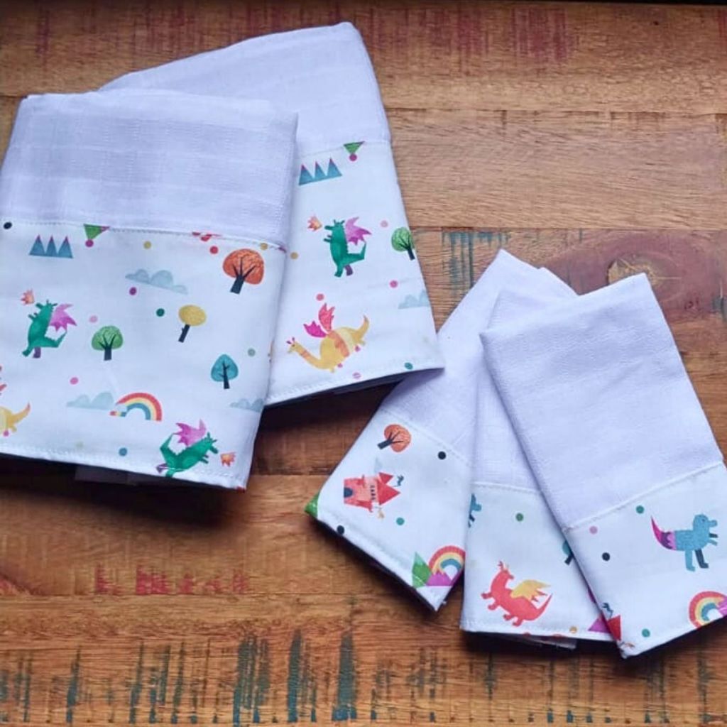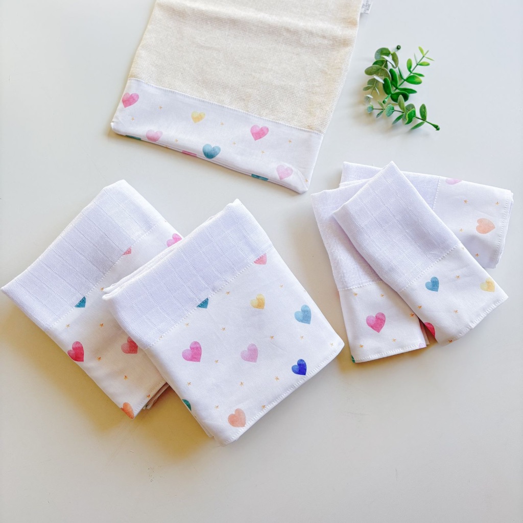 Kit Fraldas de Boca e Ombro Bebê Tricoline 100% Algodão com Saquinho Presenteável Ceci Petit Home