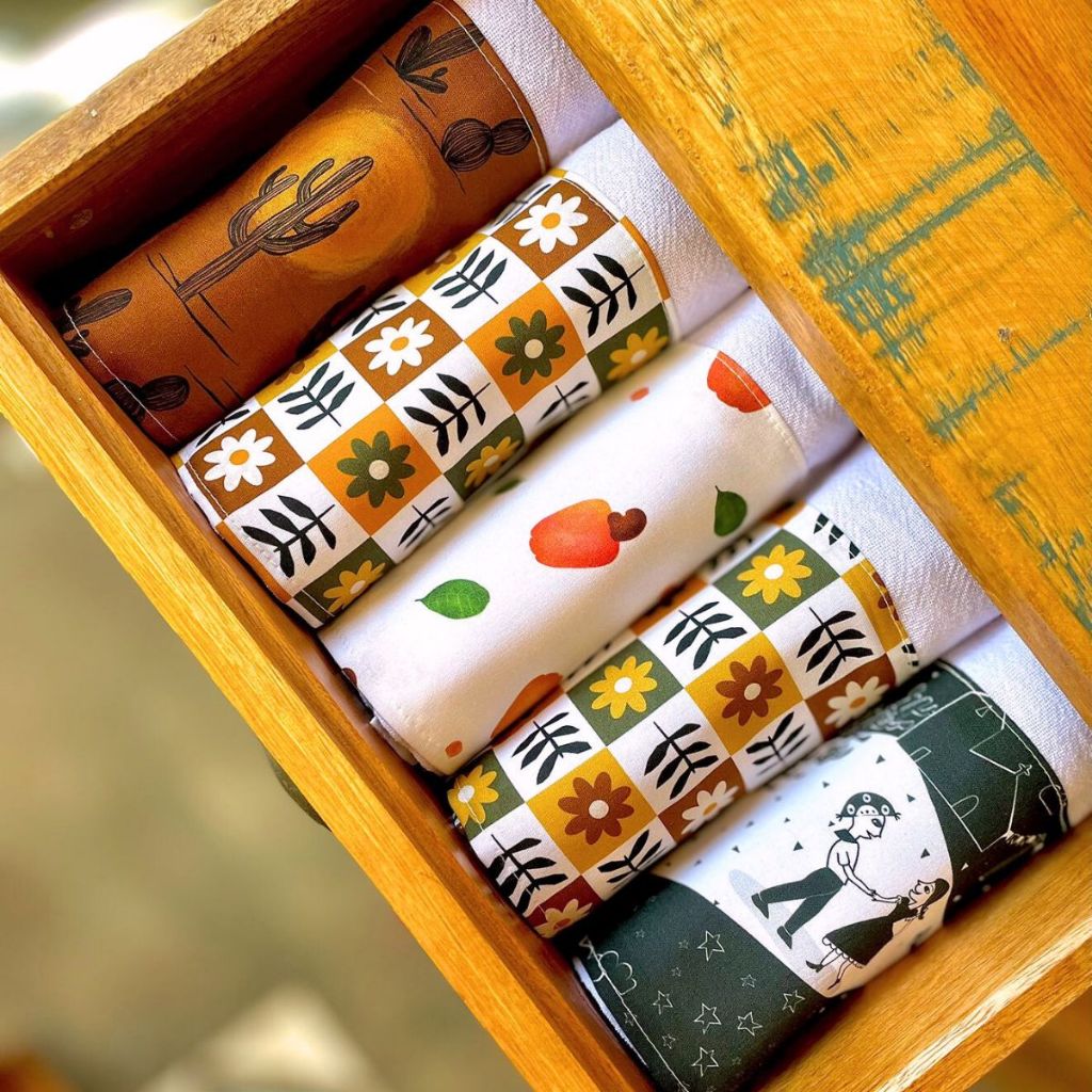 Panos de Prato Barrado Kit Premium om Embalagem Presenteável 100% Algodão Ceci Petit Home