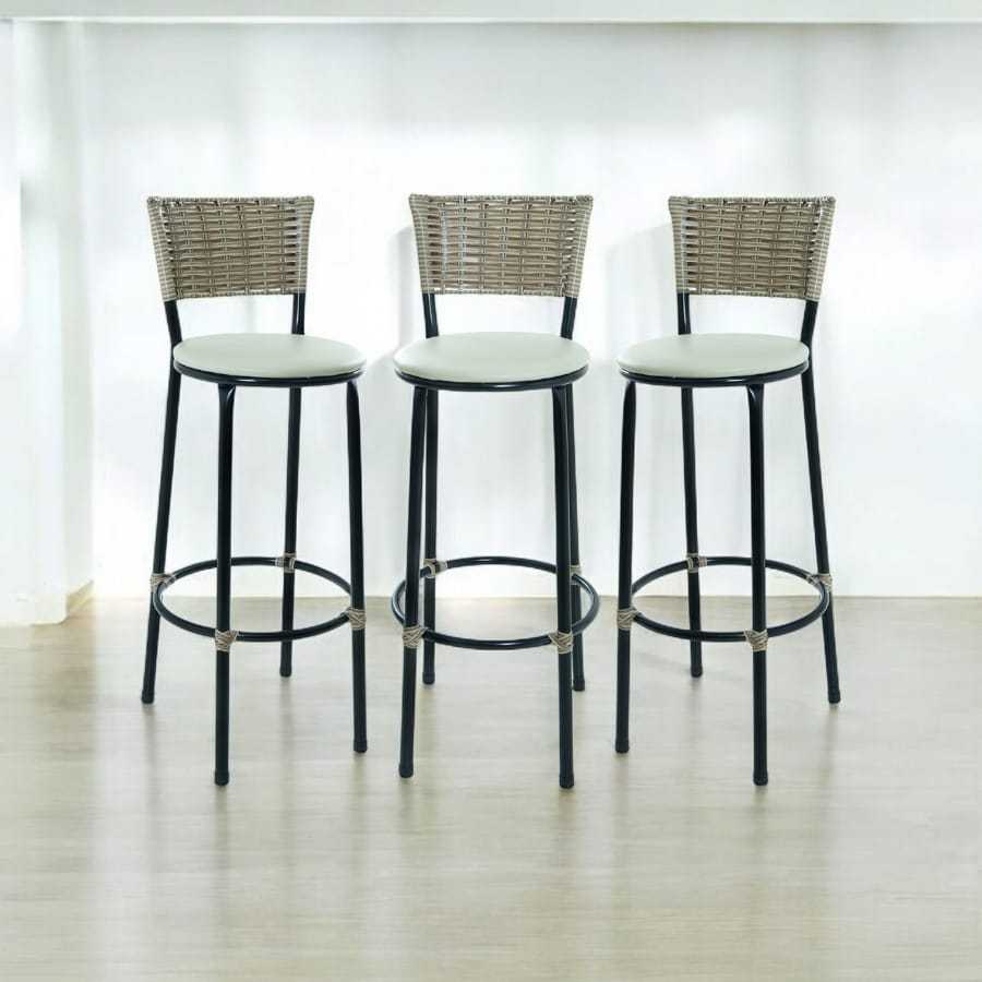 3 banquetas banco alto fibra sintetica junco capuccino cozinha bancada balcão