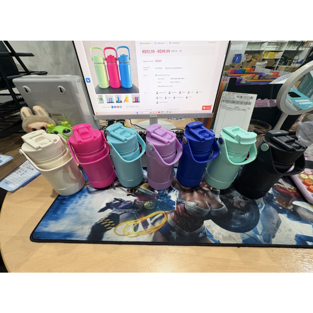 Garrafa térmica inox 350/600/800ml, bico duplo com capa protetora de silicone--new