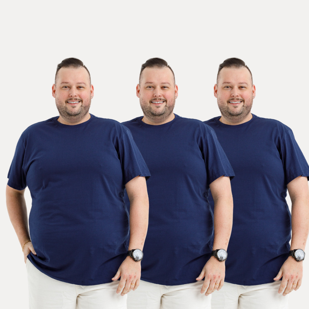 KIT 3 Lote Camiseta Camisa Plus Size Masculina Extra Grande 100% Algodão 30.1 -G1 G2 G3 G4 G5