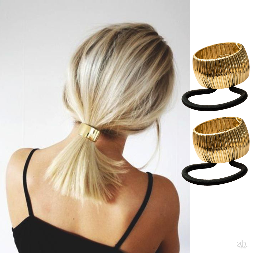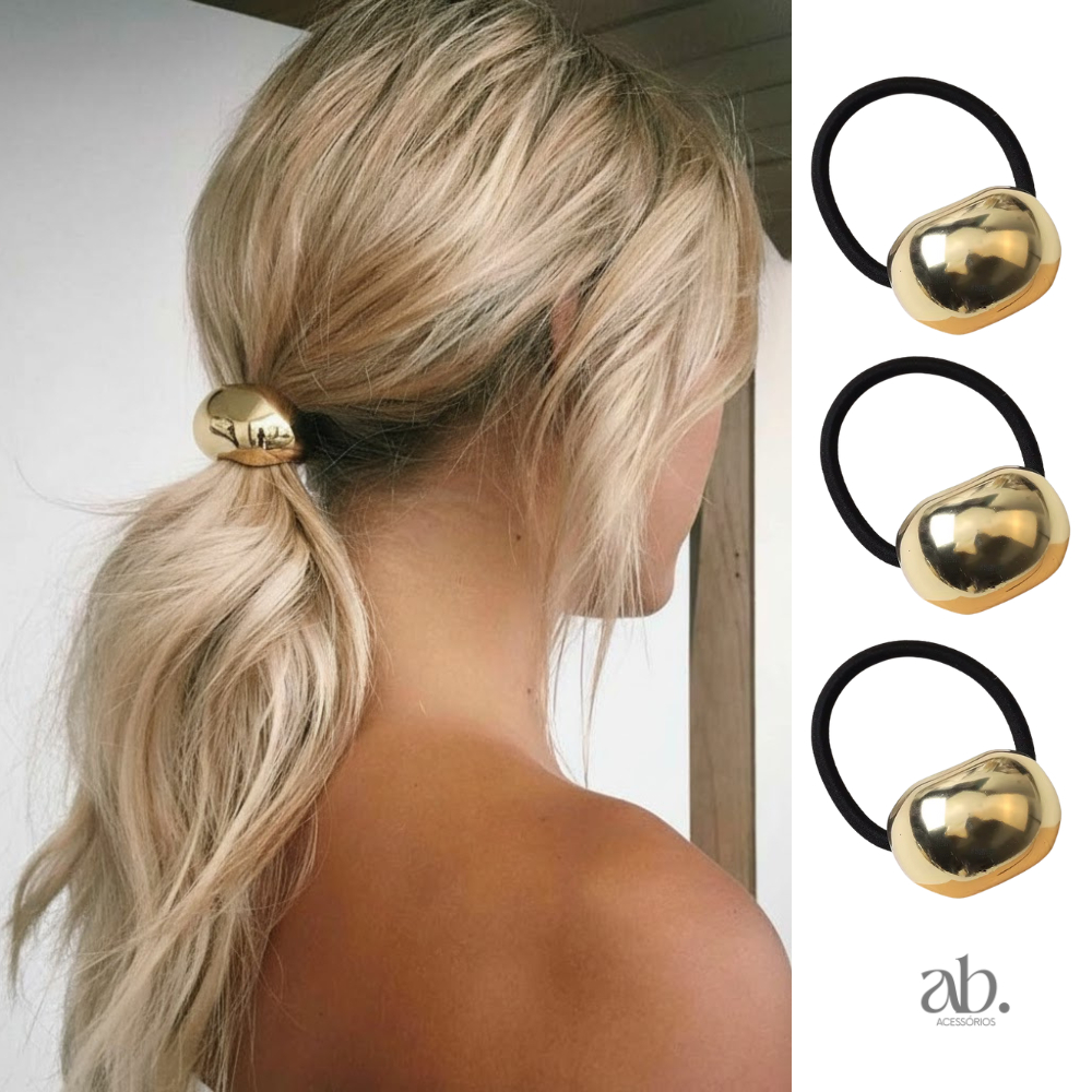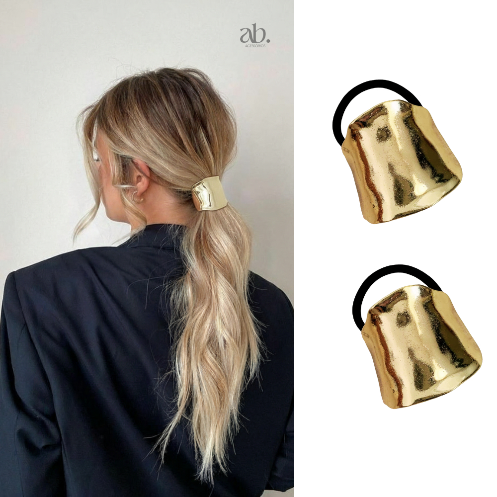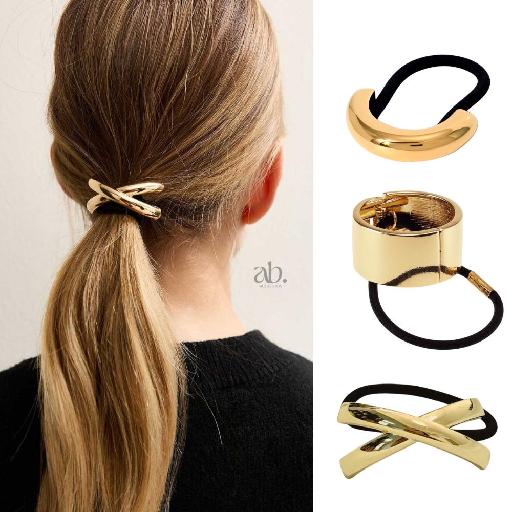 Acessórios de Cabelo Dourado Xuxa Elástico Elegante Luxo Feminino Amarrador Prendedor Metálico