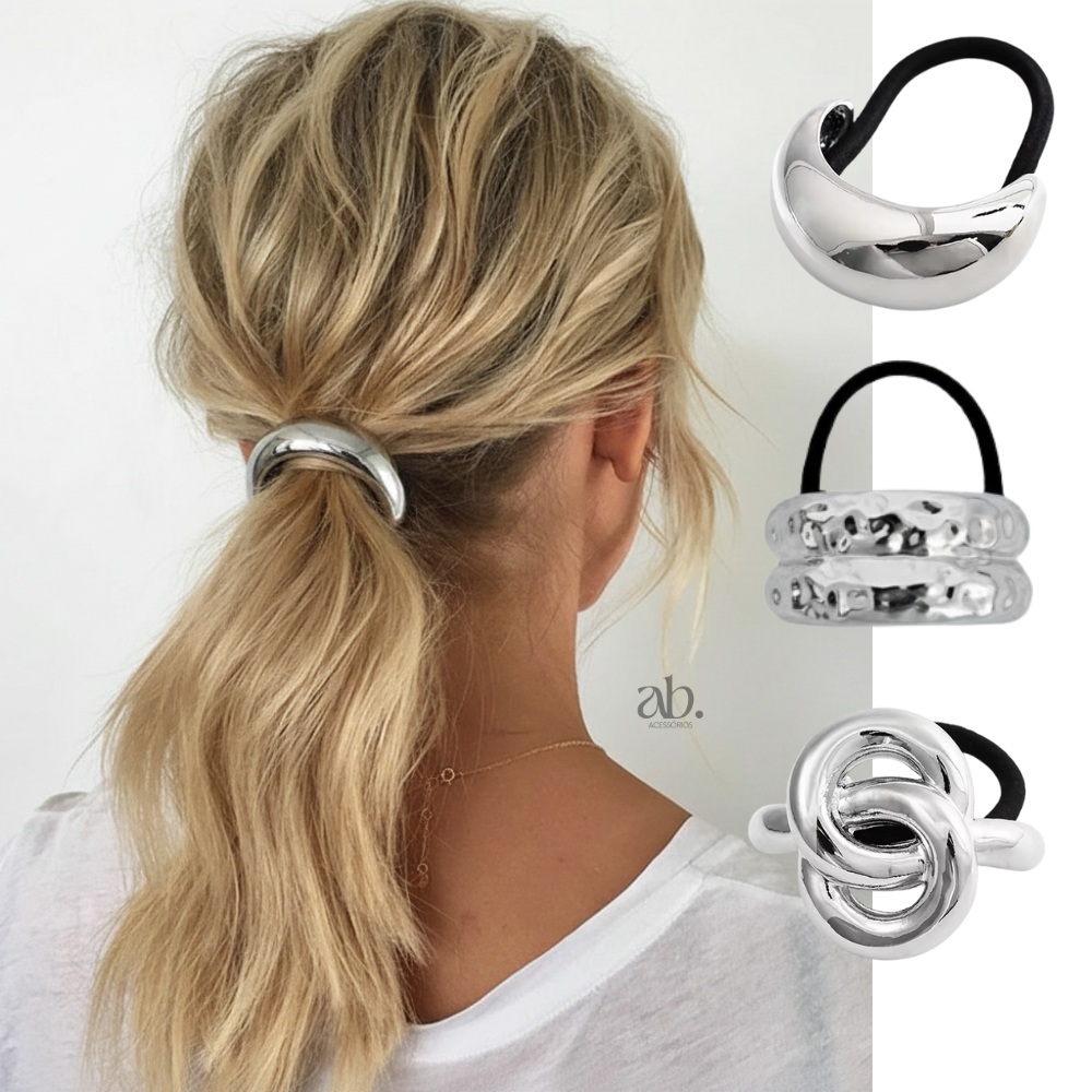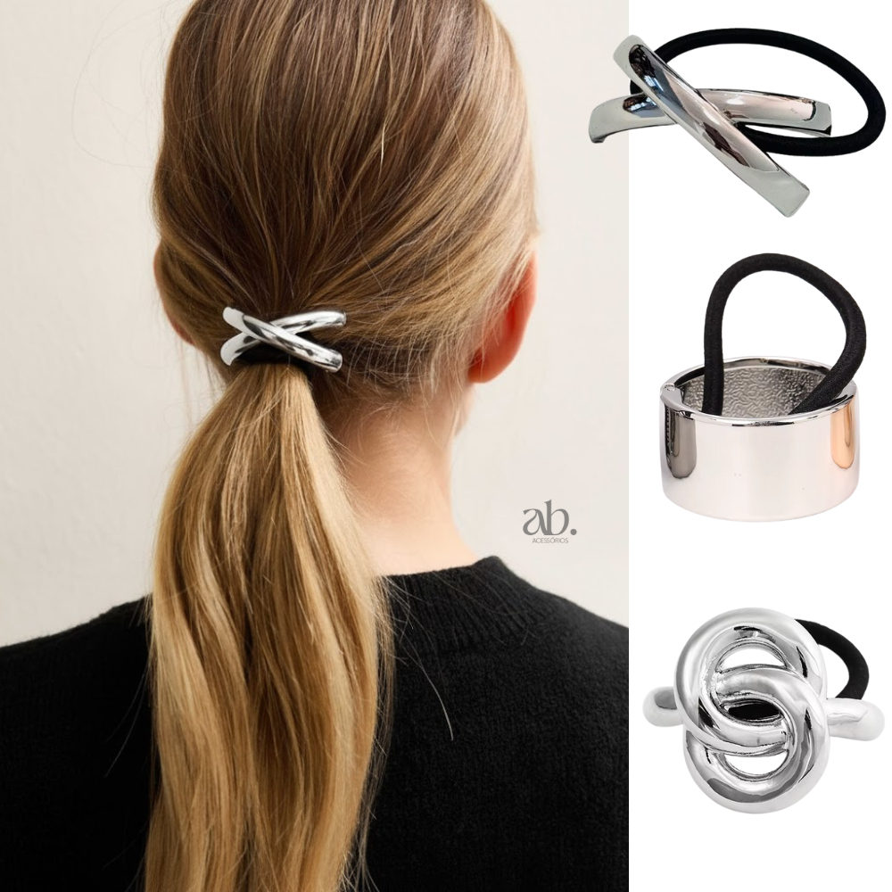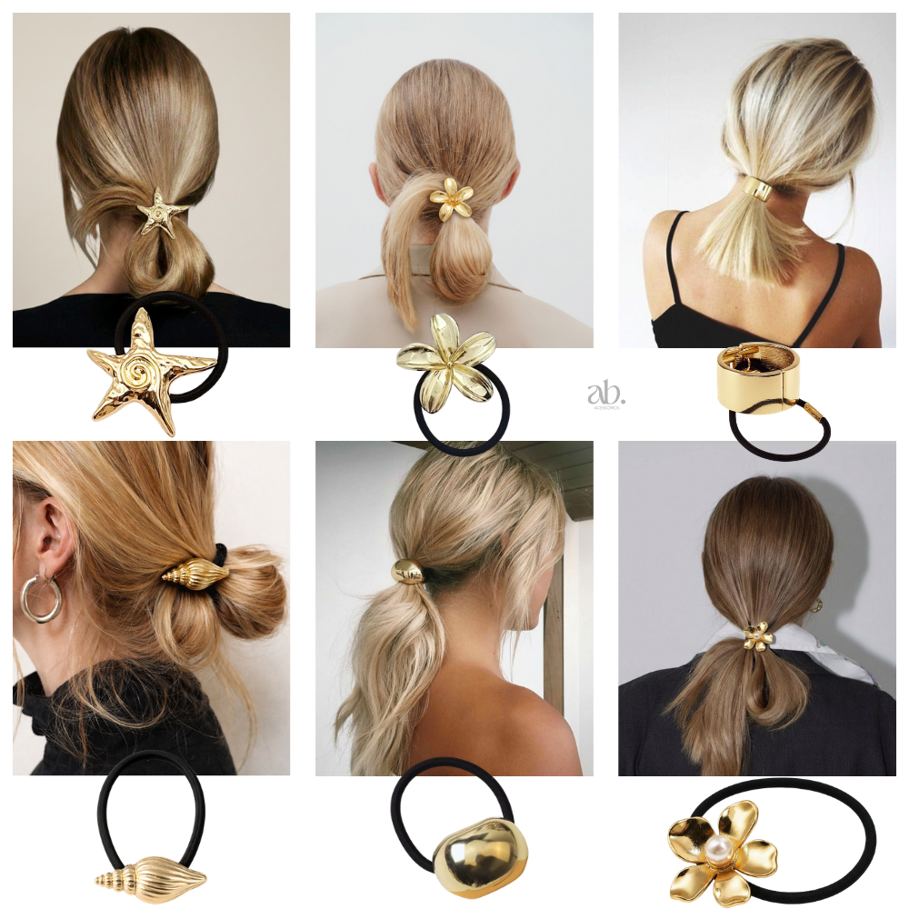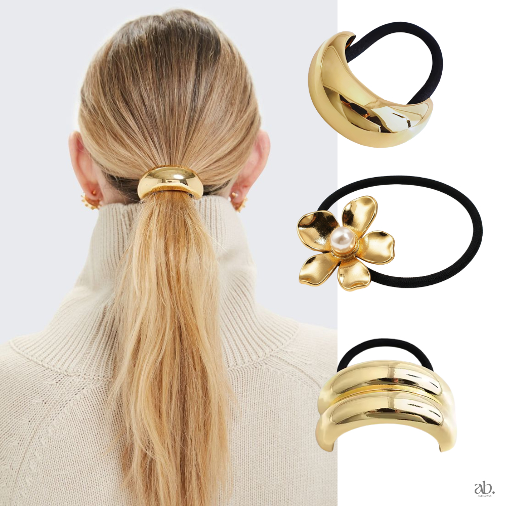 Acessórios de Cabelo Dourado Xuxa Elástico Elegante Luxo Feminino Amarrador Prendedor Metálico