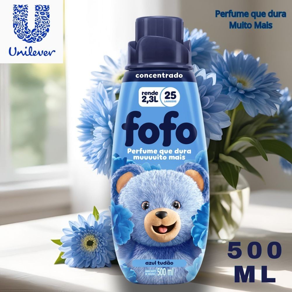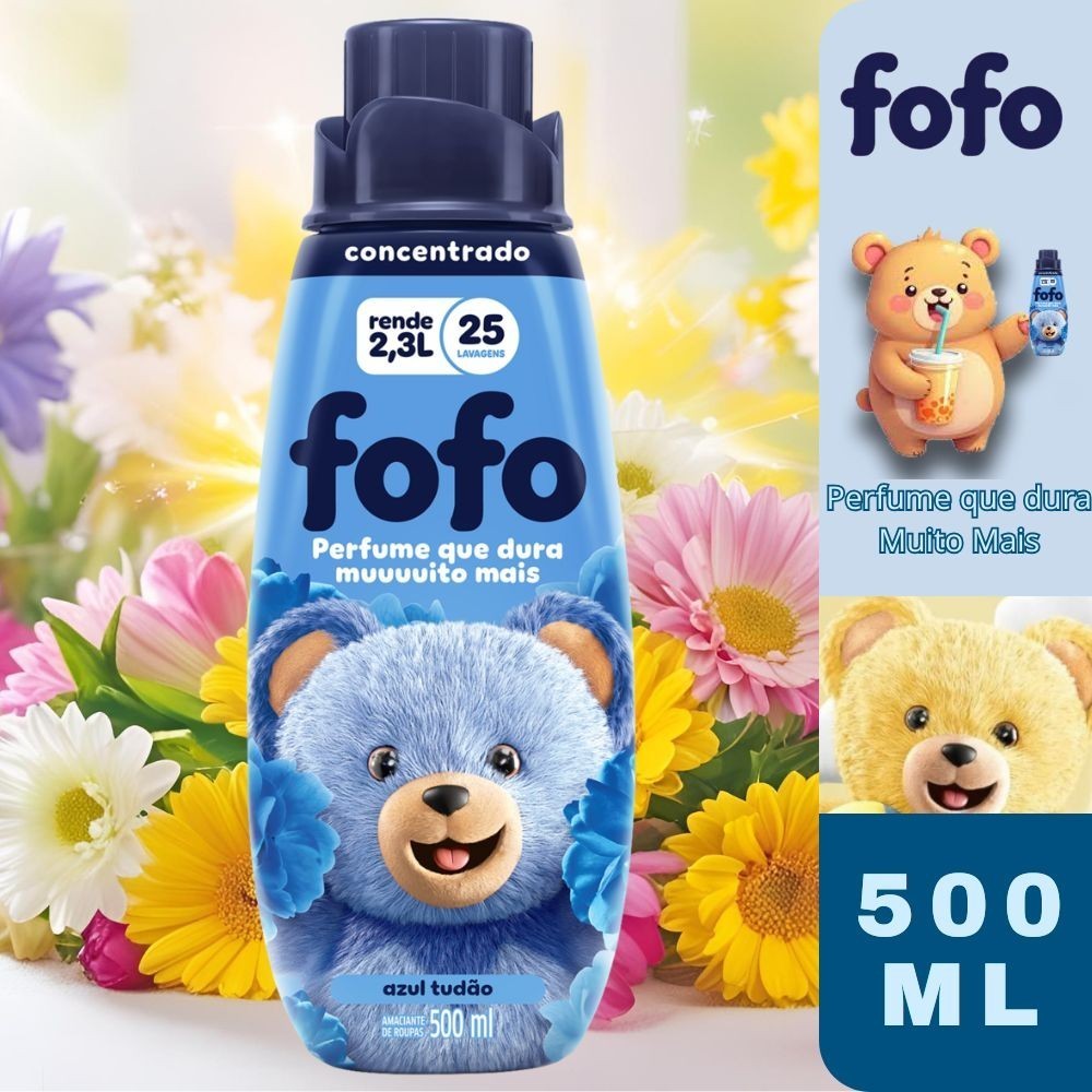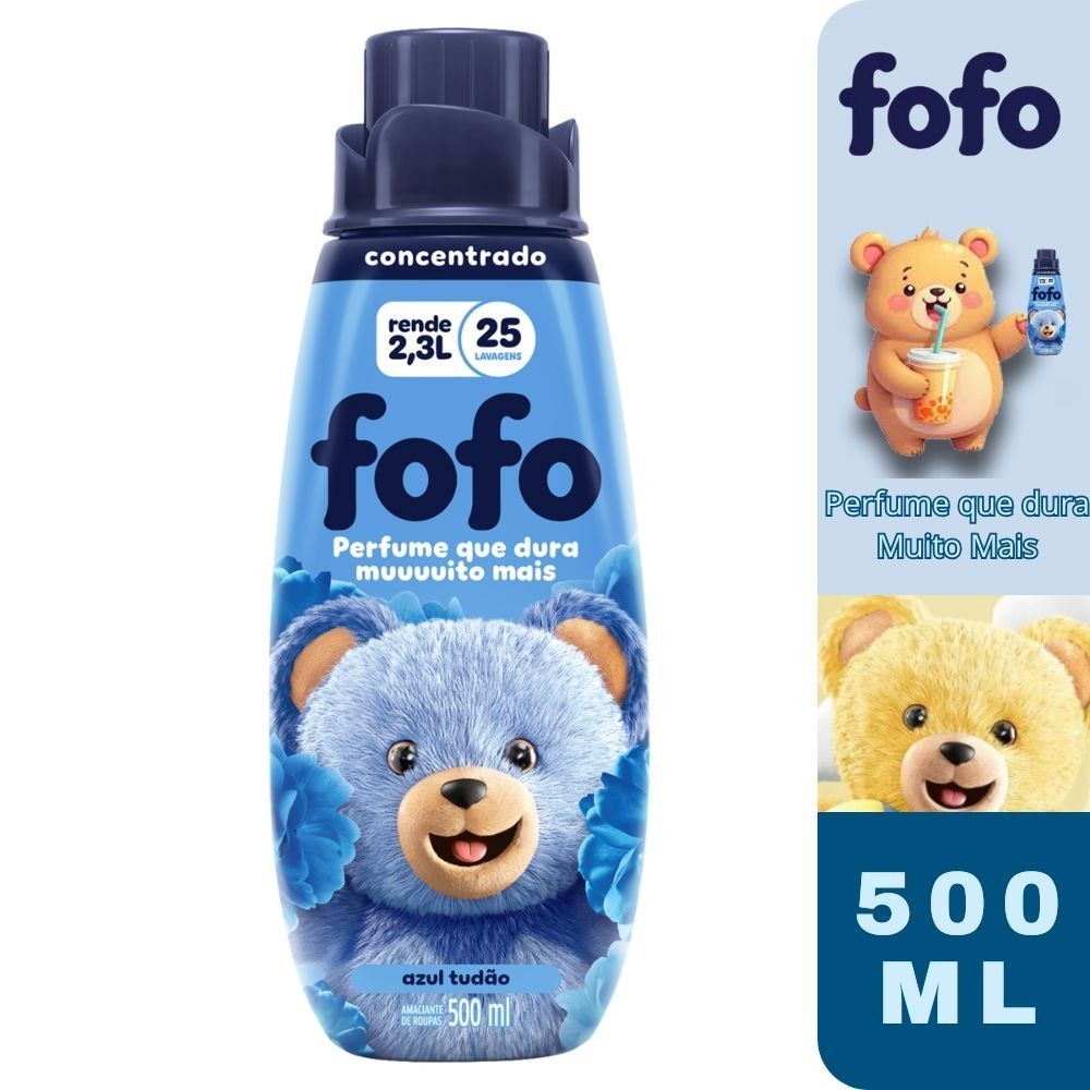 Kit 2 Amaciante de Roupa Líquido Concentrado Fofo Azul Tudão 500ML - Rende mais de 2L