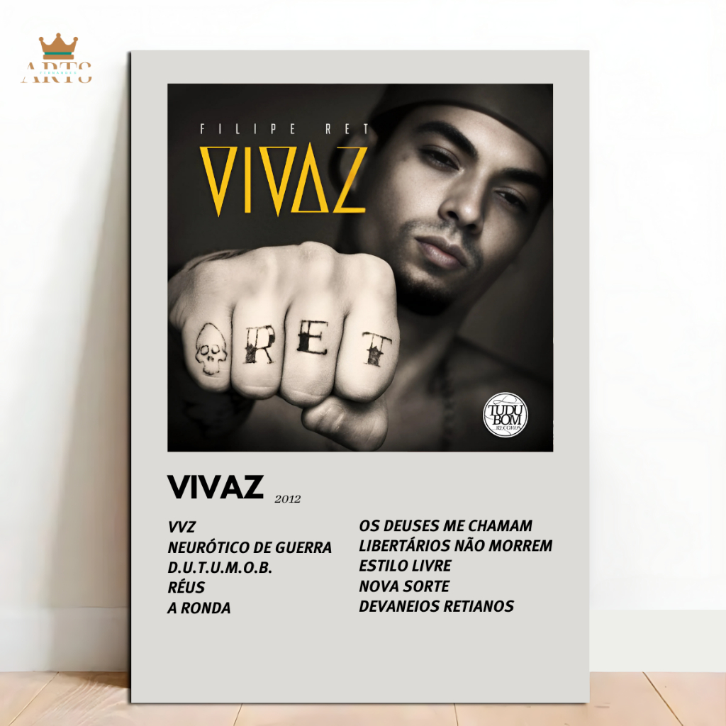 Quadro Decorativo Placas Filipe Ret Quadro Discografia Album em MDF 30x20cm Full HD