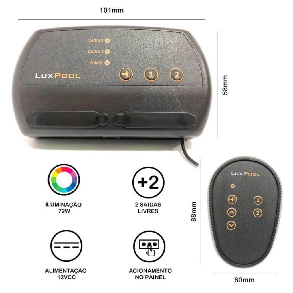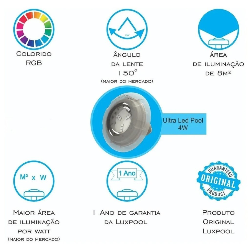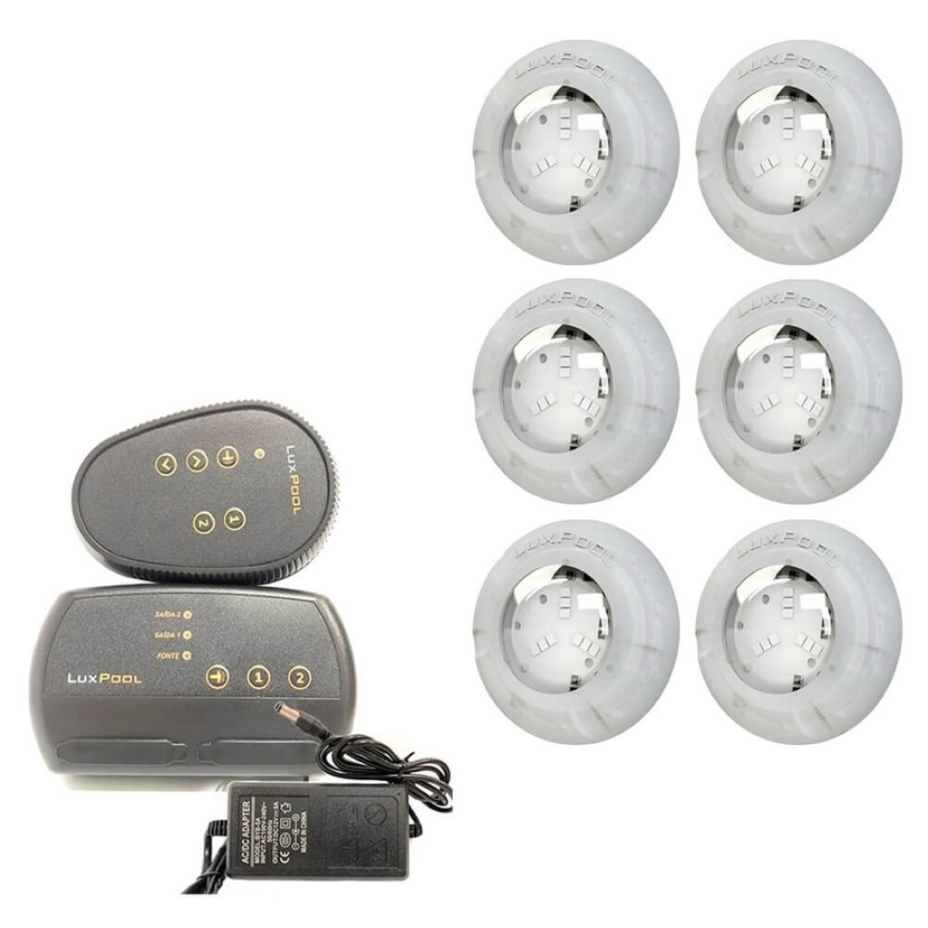 Kit 6 Refletor Led Piscina RGB 4W Luxpool + Central compacta
