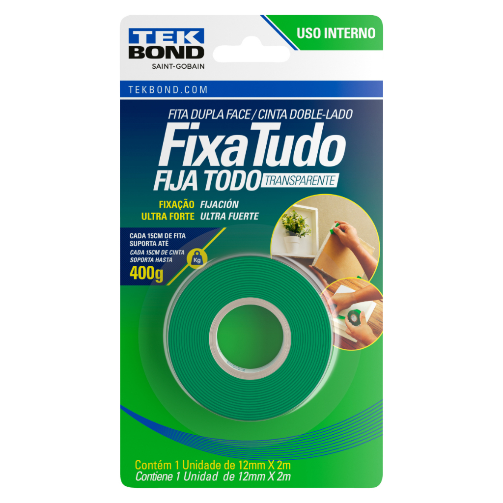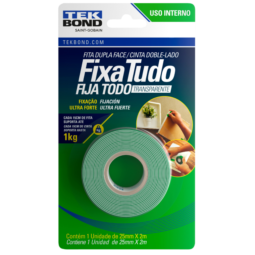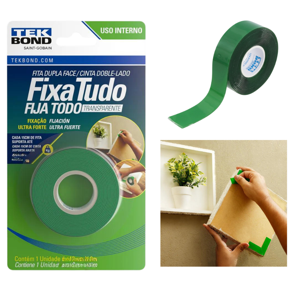 Fita Dupla Face Acrílica Transparente Tekbond Ultra Forte