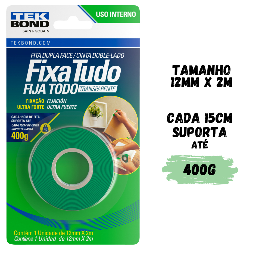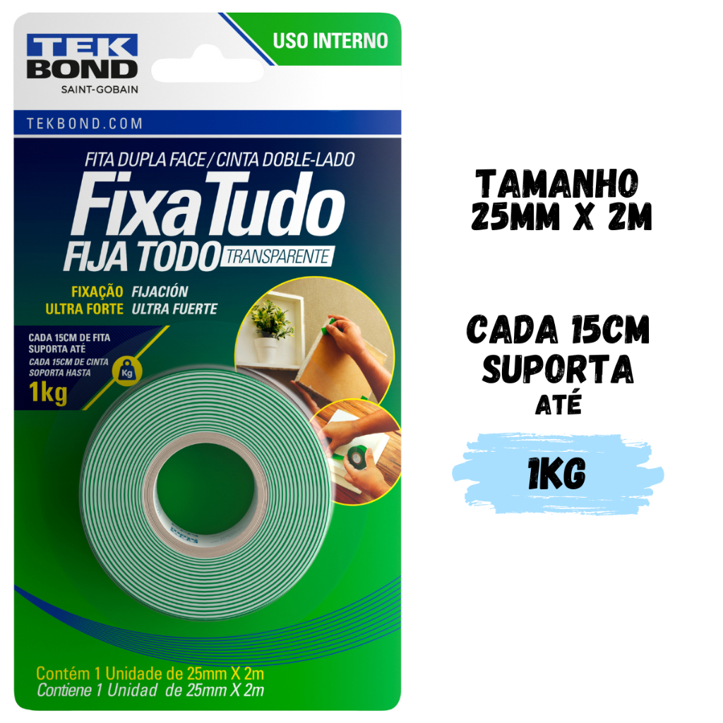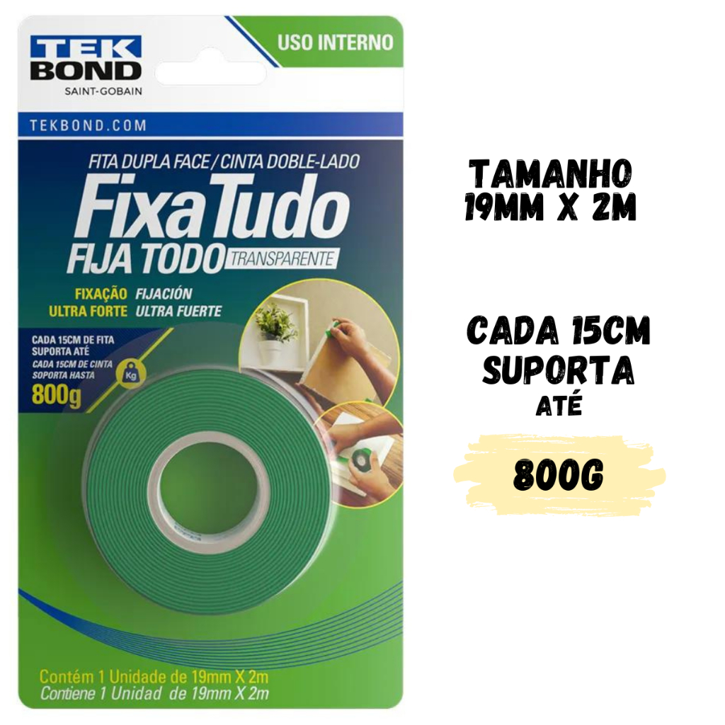 Fita Dupla Face Acrílica Transparente Tekbond Ultra Forte