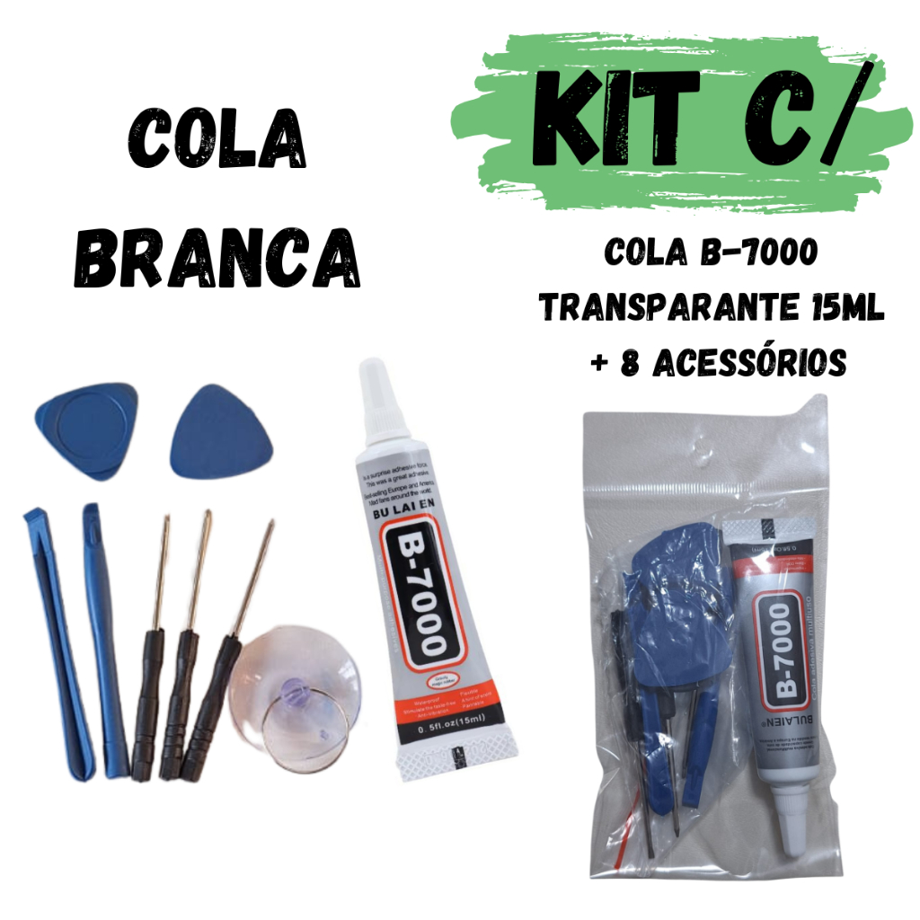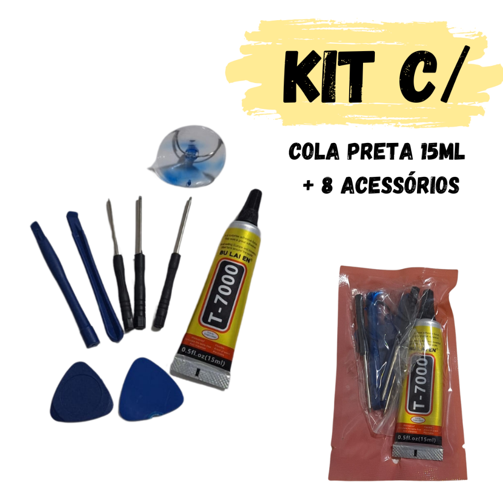 Cola Celular + kit ferramentas Preta T-7000 ou Branca B-7000 15ml para Troca Tela Frontal