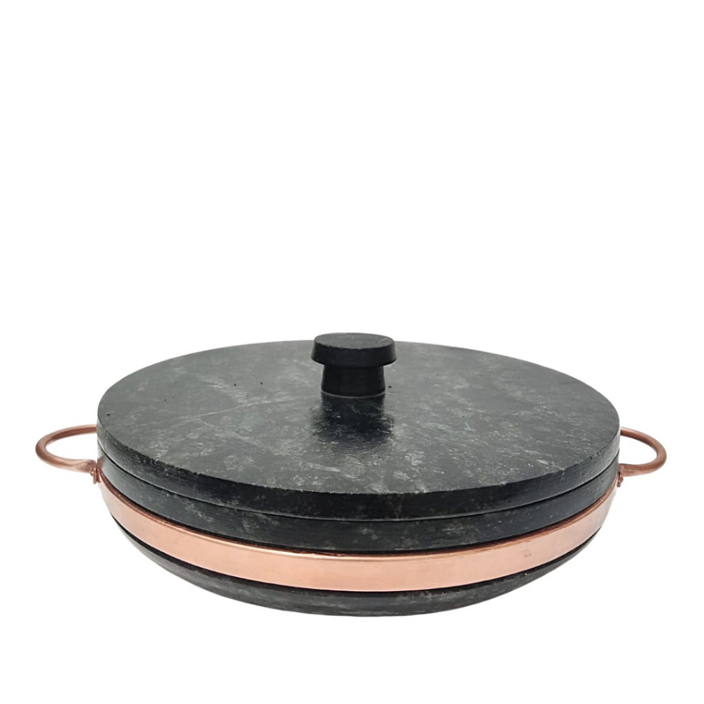 Panela Frigideira modelo Paella 22cm com tampa pedra sabão Arte Nativa