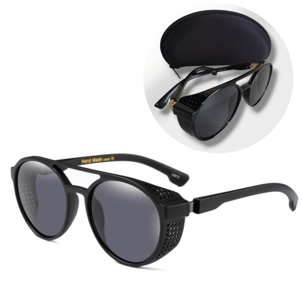 Óculos de Sol Masculino Redondo Alok Steambunk Preto UV400 Dobradiça Metal
