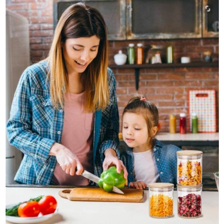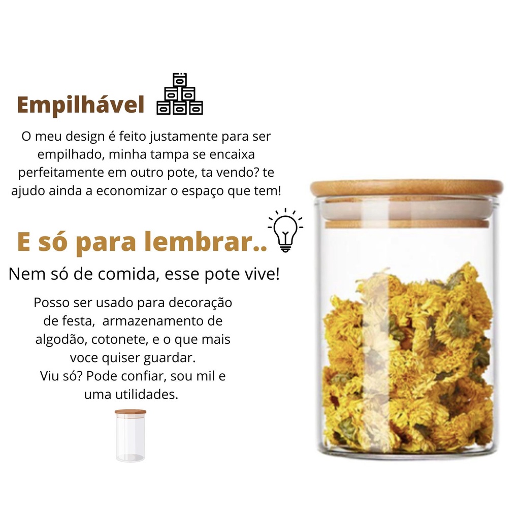 Potes De Mantimentos Redondo 200ml Hermético Com Tampa Bambu