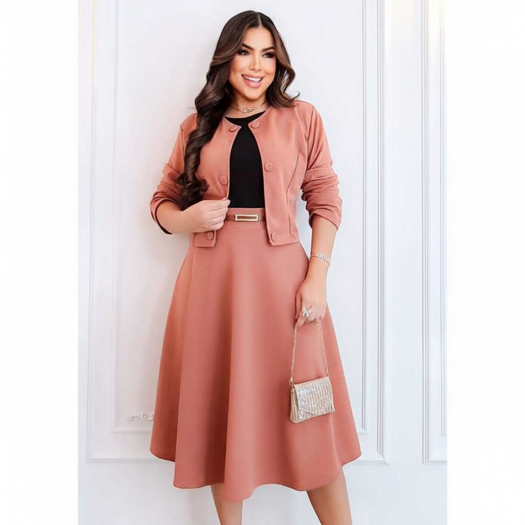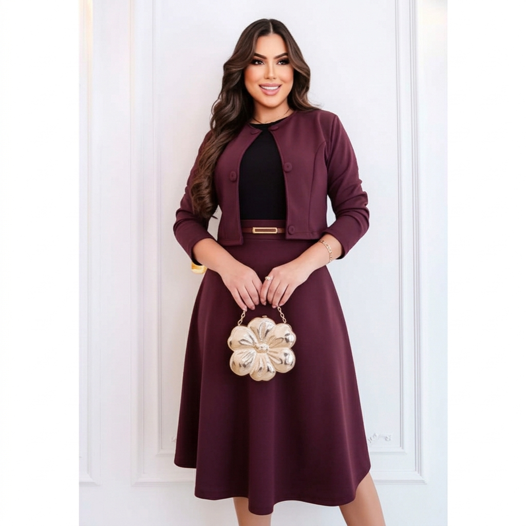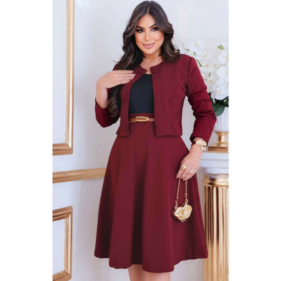 CONJUNTO 4 PEÇAS: BLAZER 6 BOTÕES, SAIA, CAMISETA E CINTO MODA EVANGÉLICA, CONGRESSO CULTO PLUS SIZE