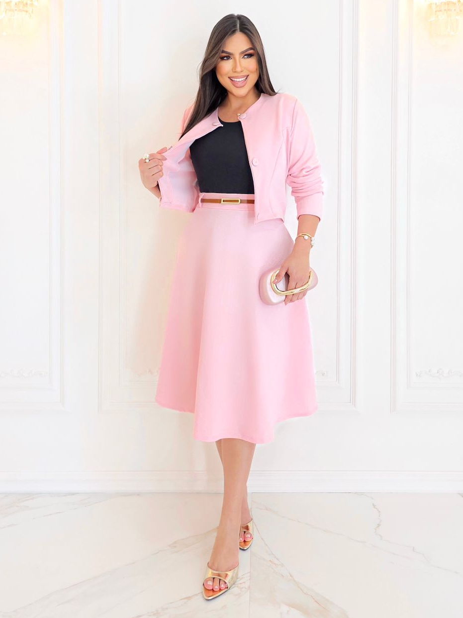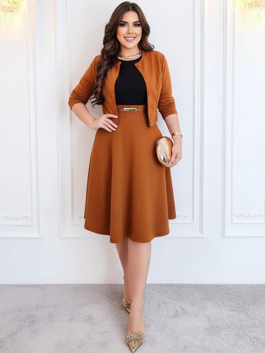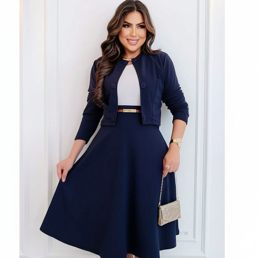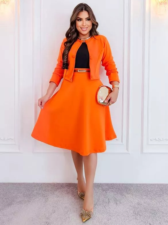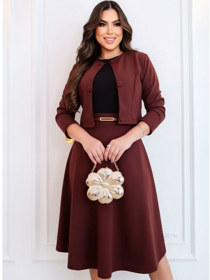CONJUNTO 4 PEÇAS: BLAZER 6 BOTÕES, SAIA, CAMISETA E CINTO MODA EVANGÉLICA, CONGRESSO CULTO PLUS SIZE