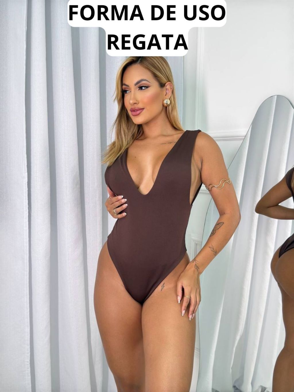 Body Feminino Suplex Regata 3 em 1 Cavado Forro Duplo Básico Moda Casual