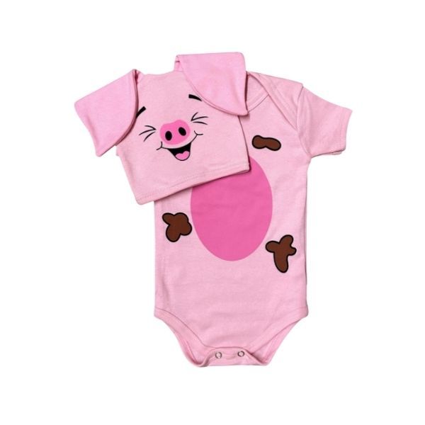 Body Bebê Temático Mesversário infantil Personagens Porquinho+Touca