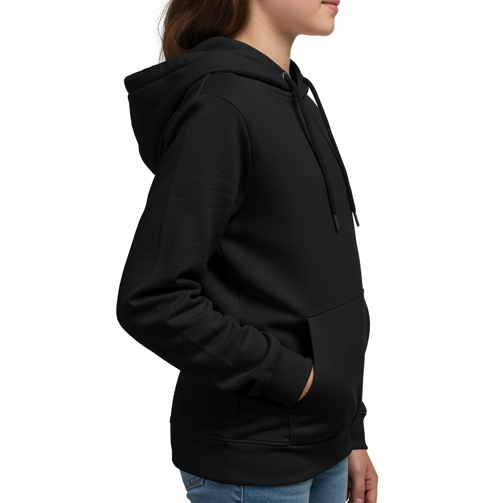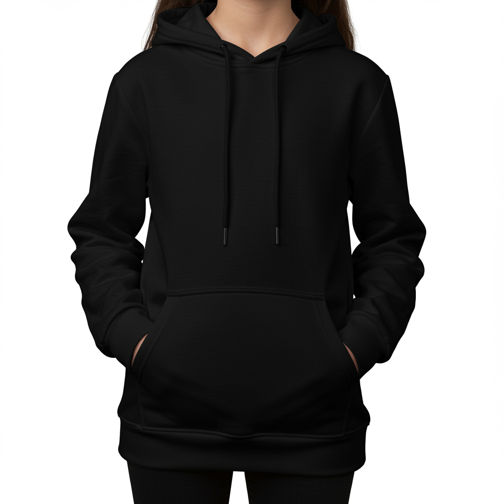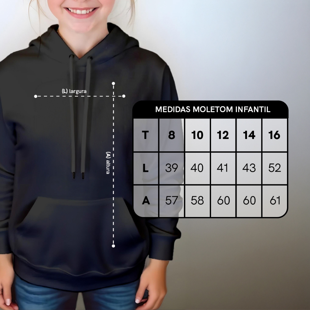 Moletom Infantil Kids Feminino Com Capuz Canguru Meninas Liso Preto Casaco Frio Promoçao