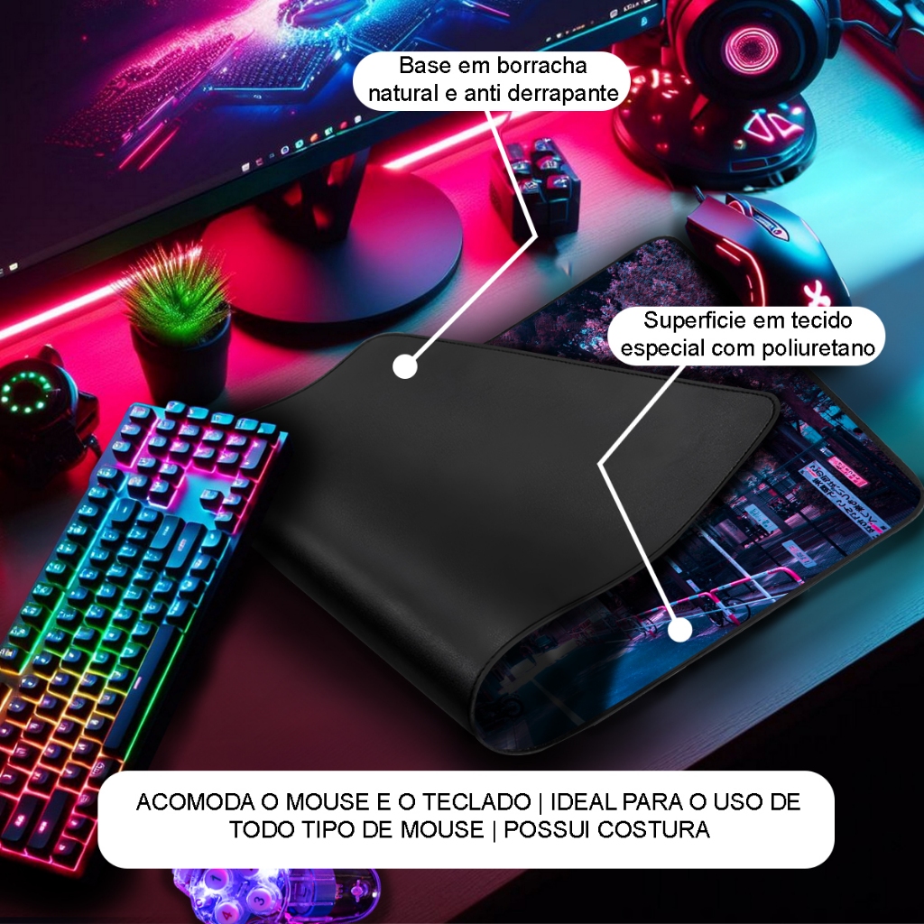 Mouse Pad Gamer Feiticeiros JJK Premium Antiderrapante com Borda Costurada Diversos Tamanhos