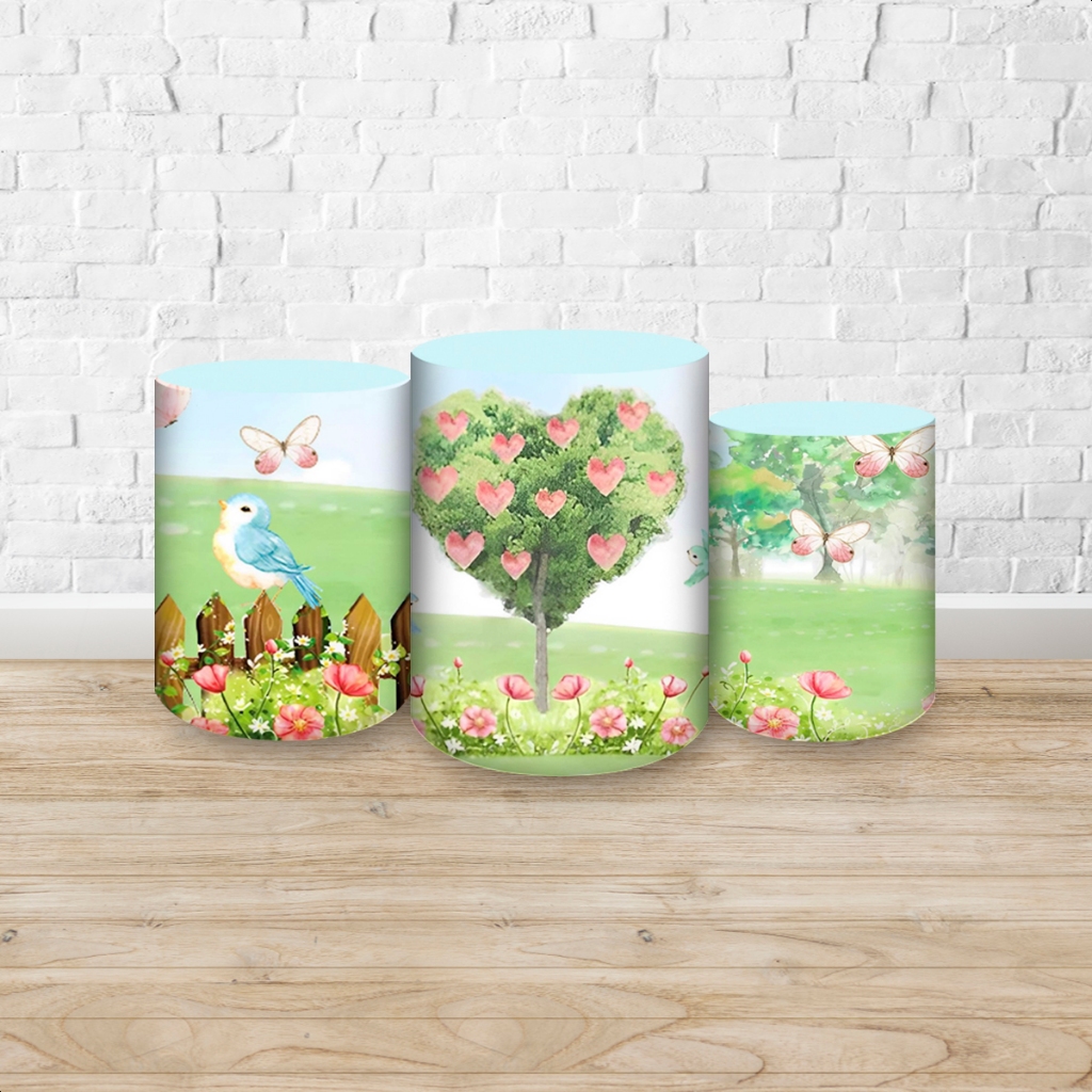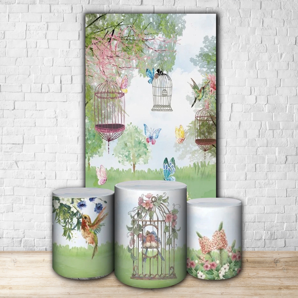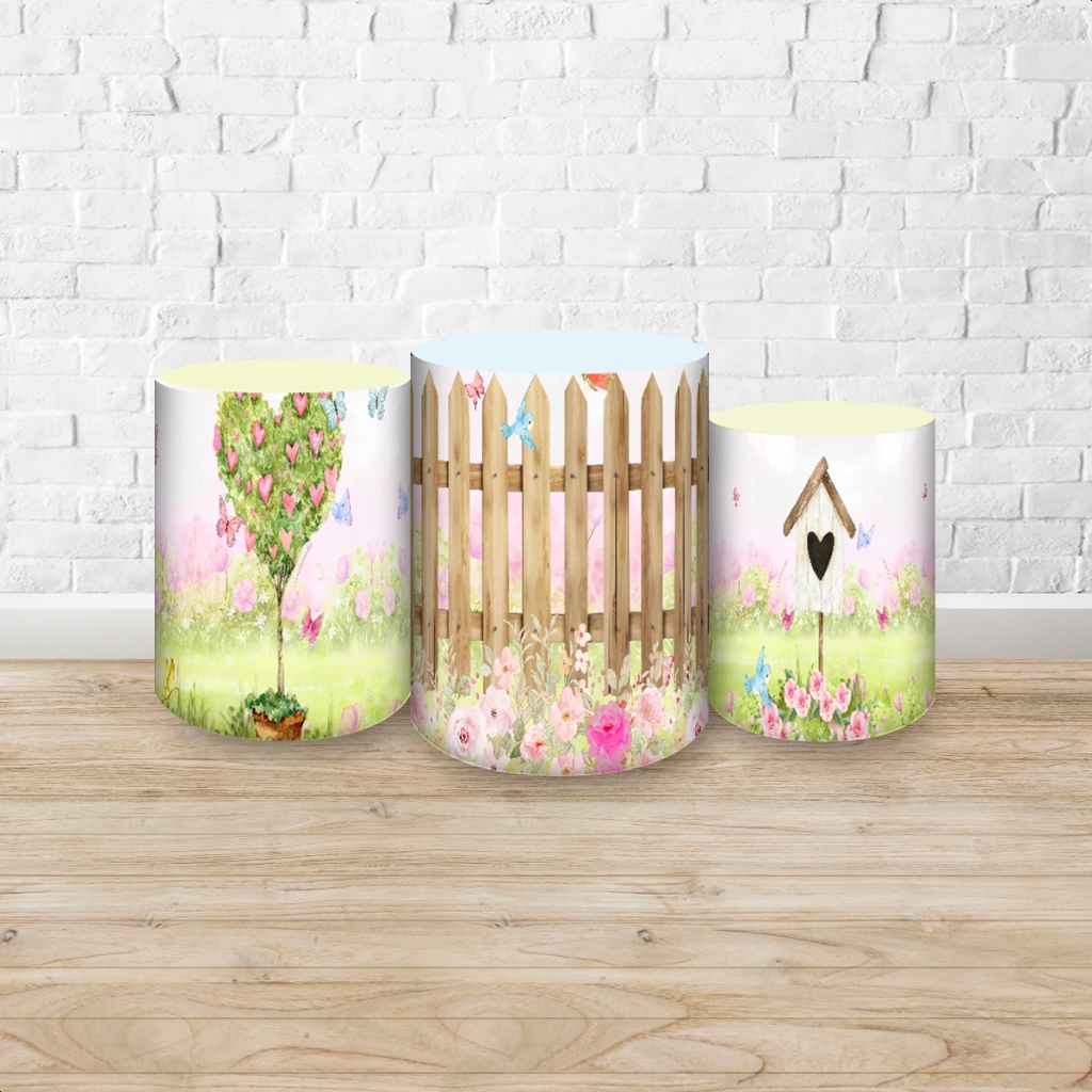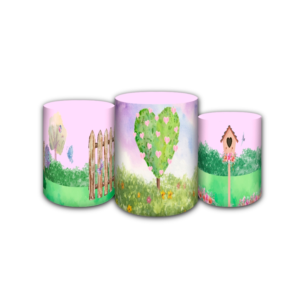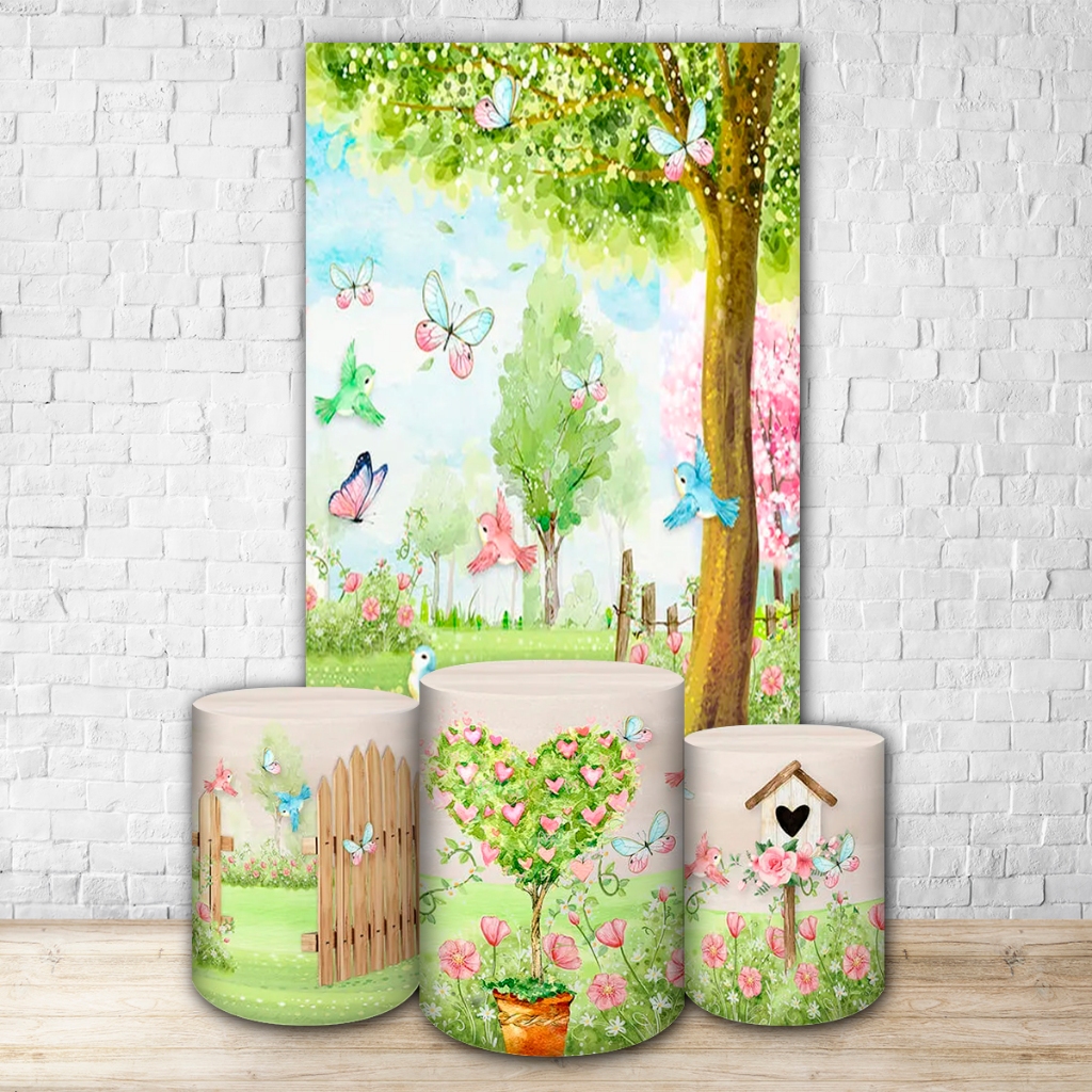 Capas de Painéis, cilindros e Kits completos Sublimados para Festa Tema Jardim
