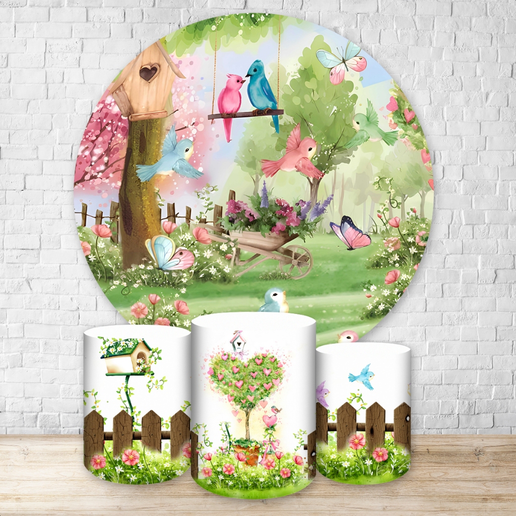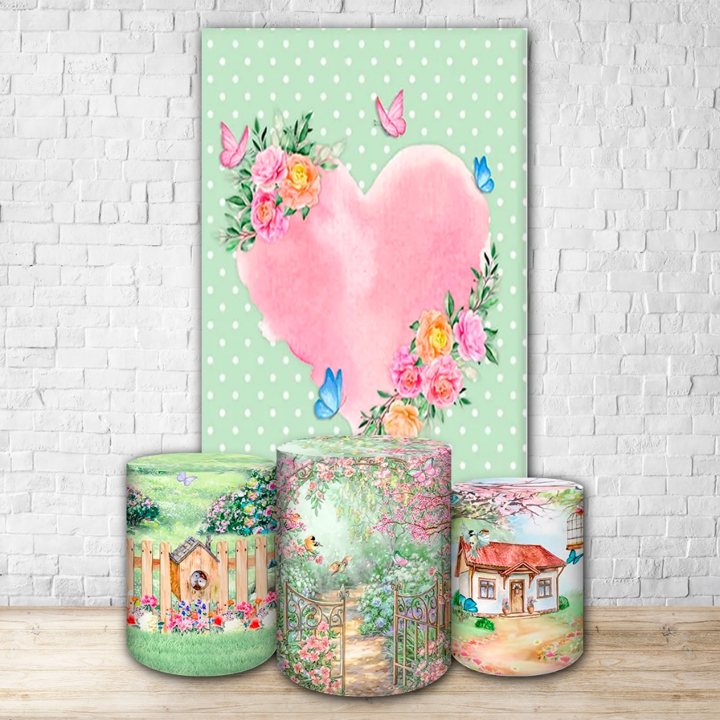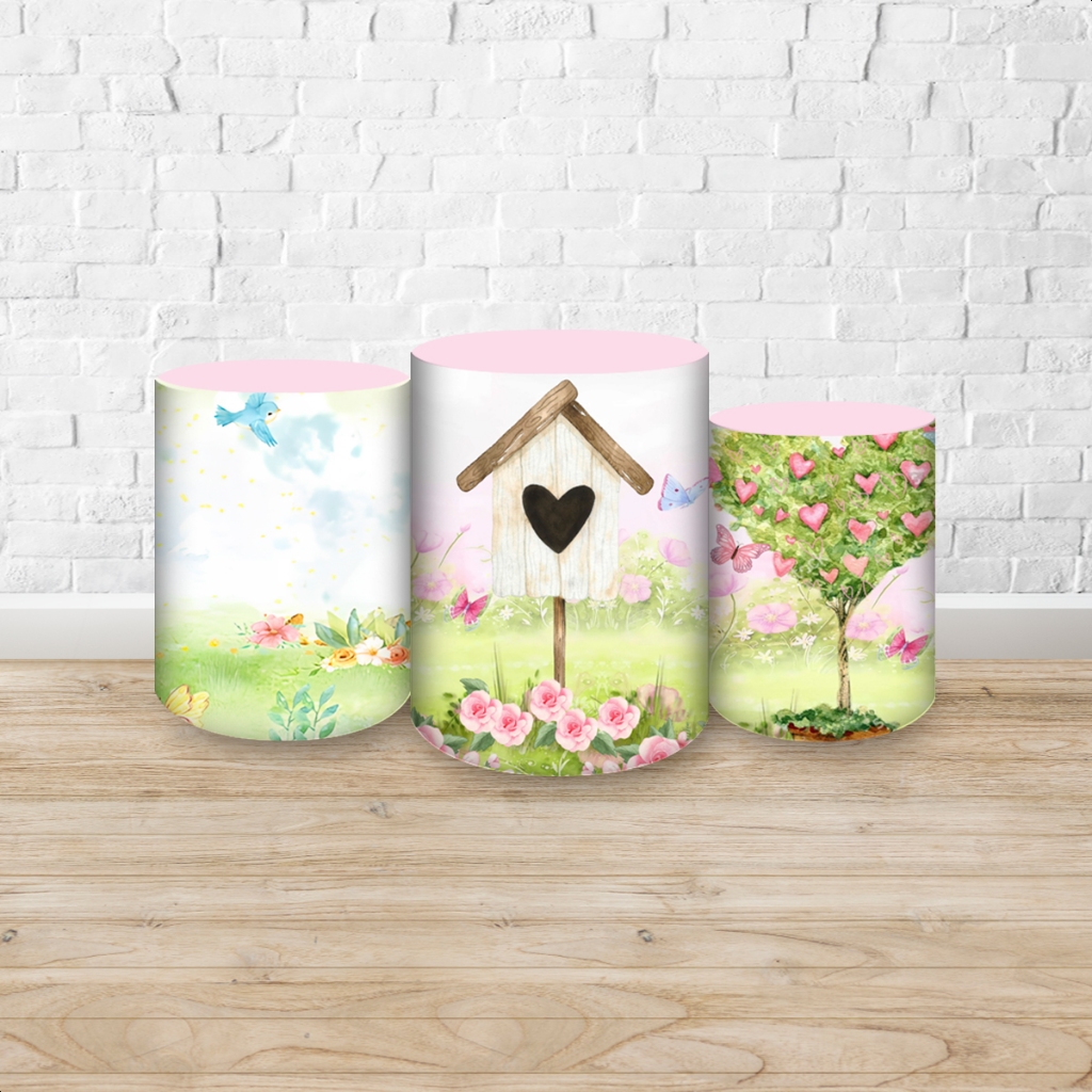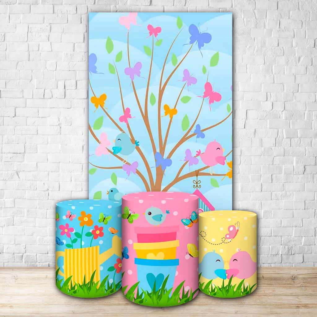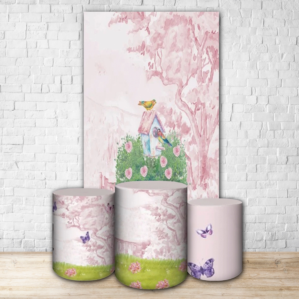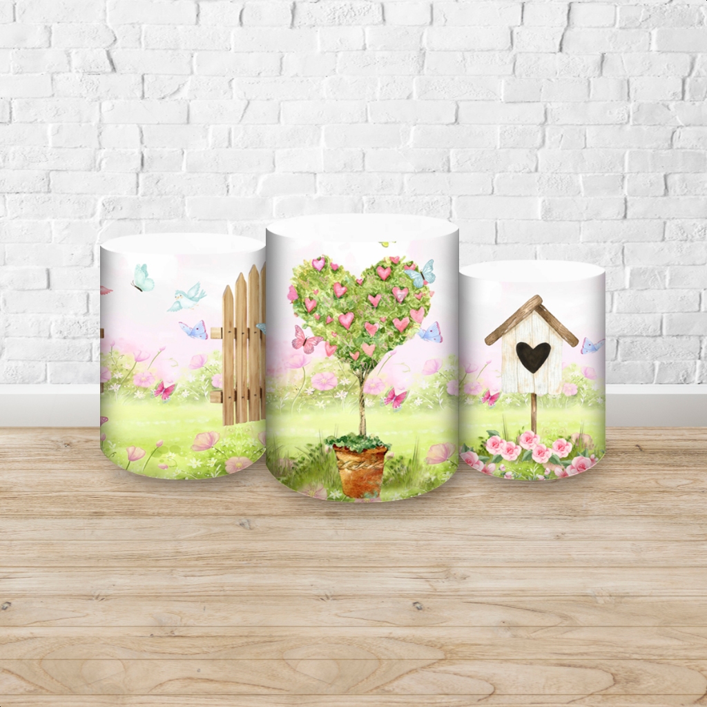 Capas de Painéis, cilindros e Kits completos Sublimados para Festa Tema Jardim