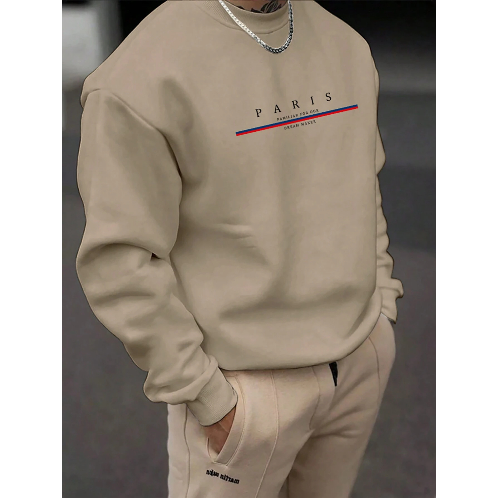 Moletom Gola Redonda Careca Blusa de Frio Casaco Masculino Estampado Paris Style Streetwear 7083