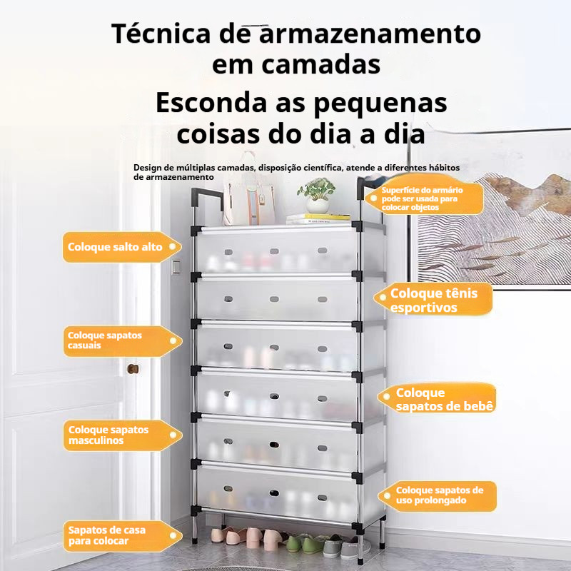 Sapateira com 7 Prateleiras / 8 Andares Organizador Para Calçados Calçados Chinelos Roupas Objetos Desmontável
