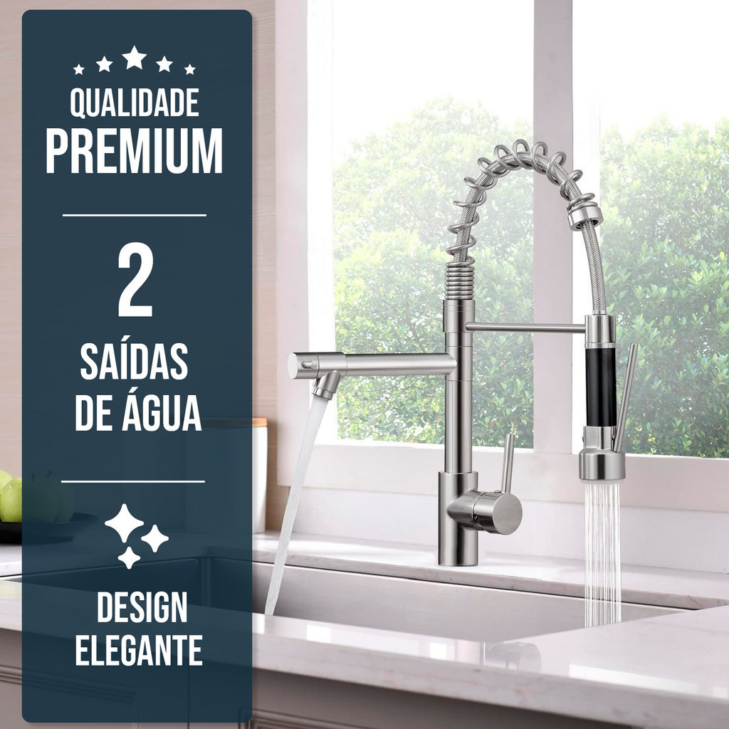 Torneira Cozinha Gourmet Monocomando Com Spray Extensor Torneira Gourmet Flexível Cozinha