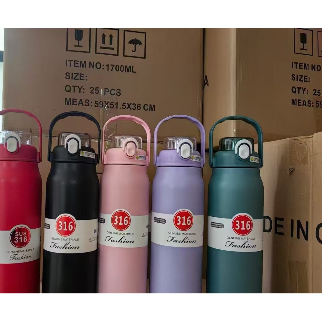 Garrafa Térmica de Viagem Aço Inox 1700ml Água Café com Alça Camping Trilha Acampamento