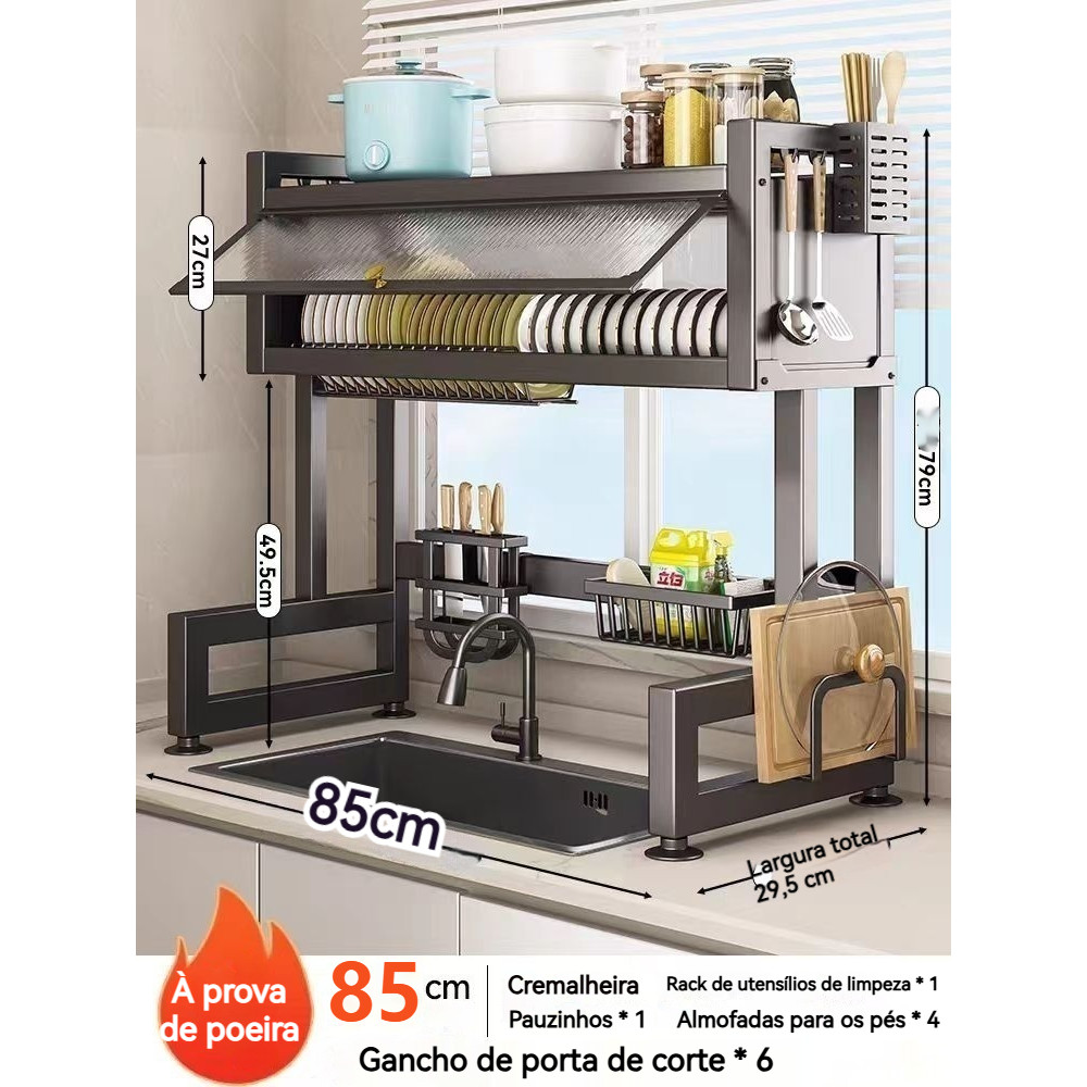 105cm Escorredor De Louça Cozinha Suspensa Modula Pia Rack Organizador Estante poeira porta armário