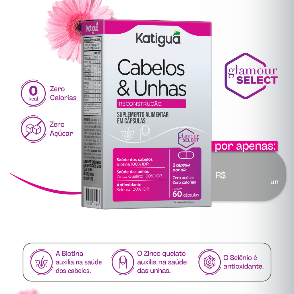 Biotina Cabelos Unhas Reconstrução 60 Cáp Suplemento Zinco Quelato Forte Resistente