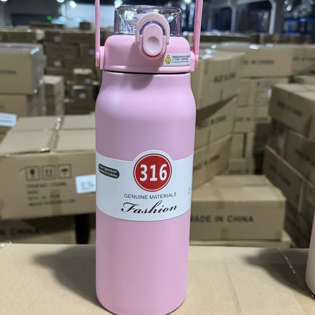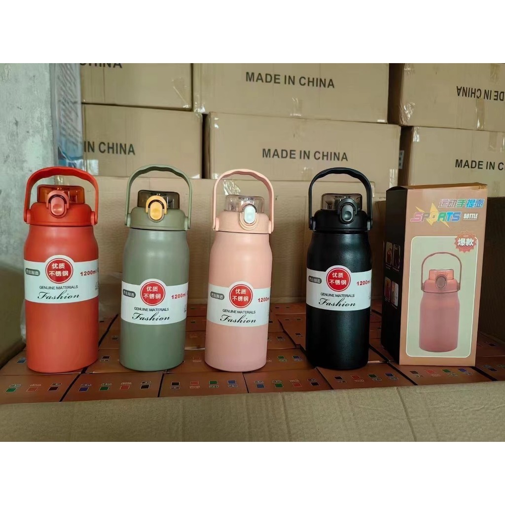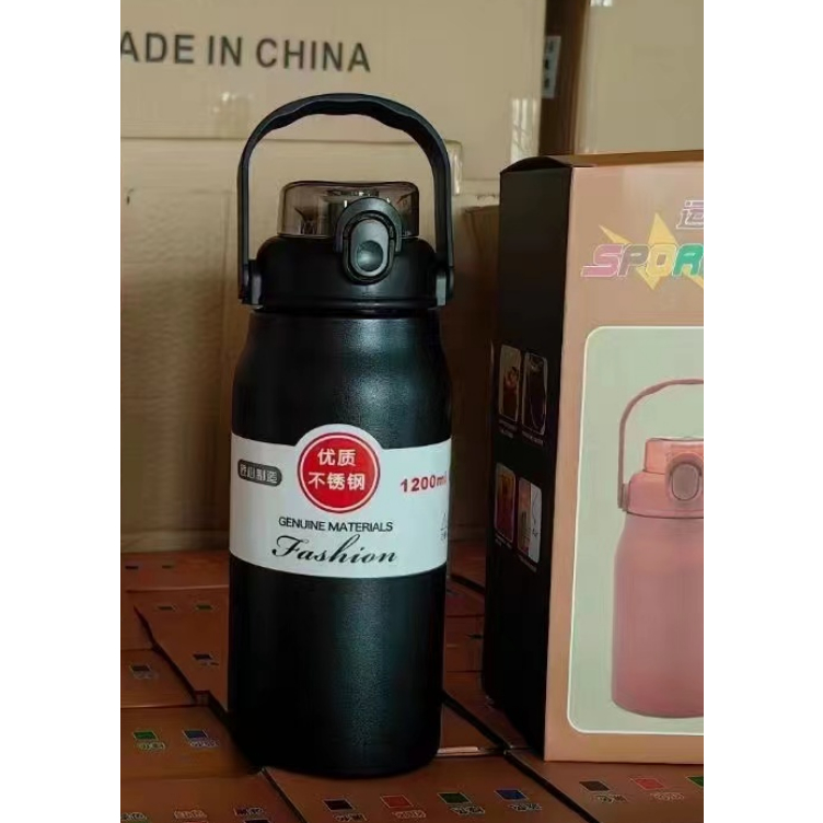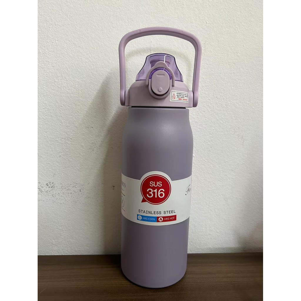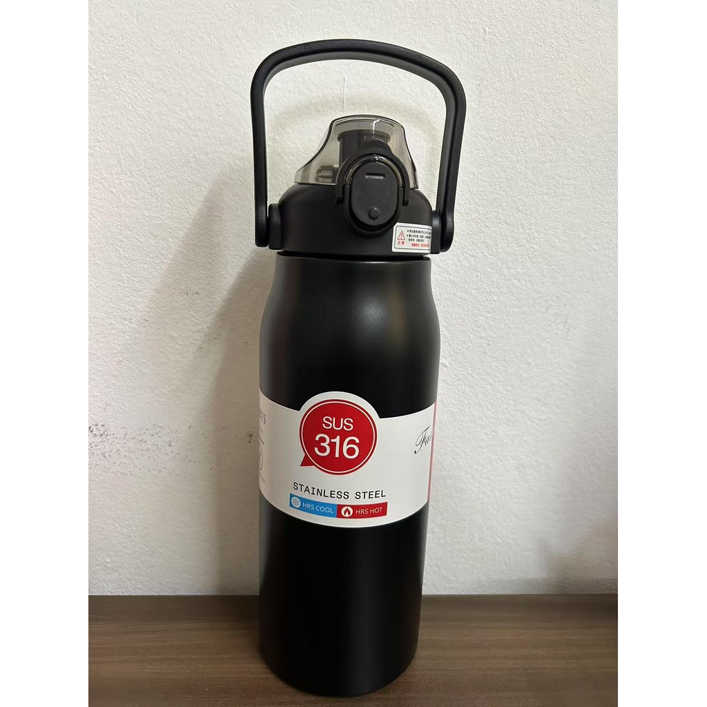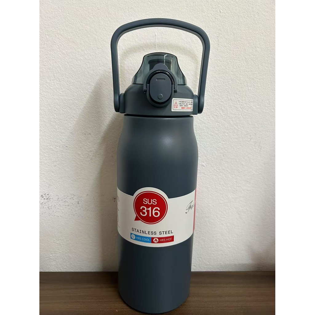 1700ML Garrafa Térmica Grande em Aço Inox Canudo Alça e Trava Parede Dupla 1,2L 3D Adesivos