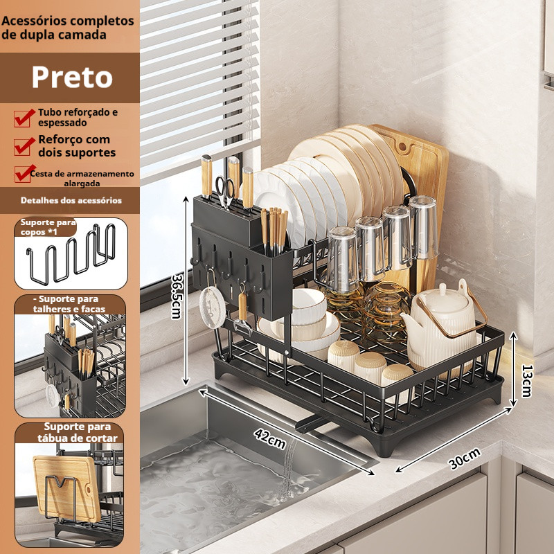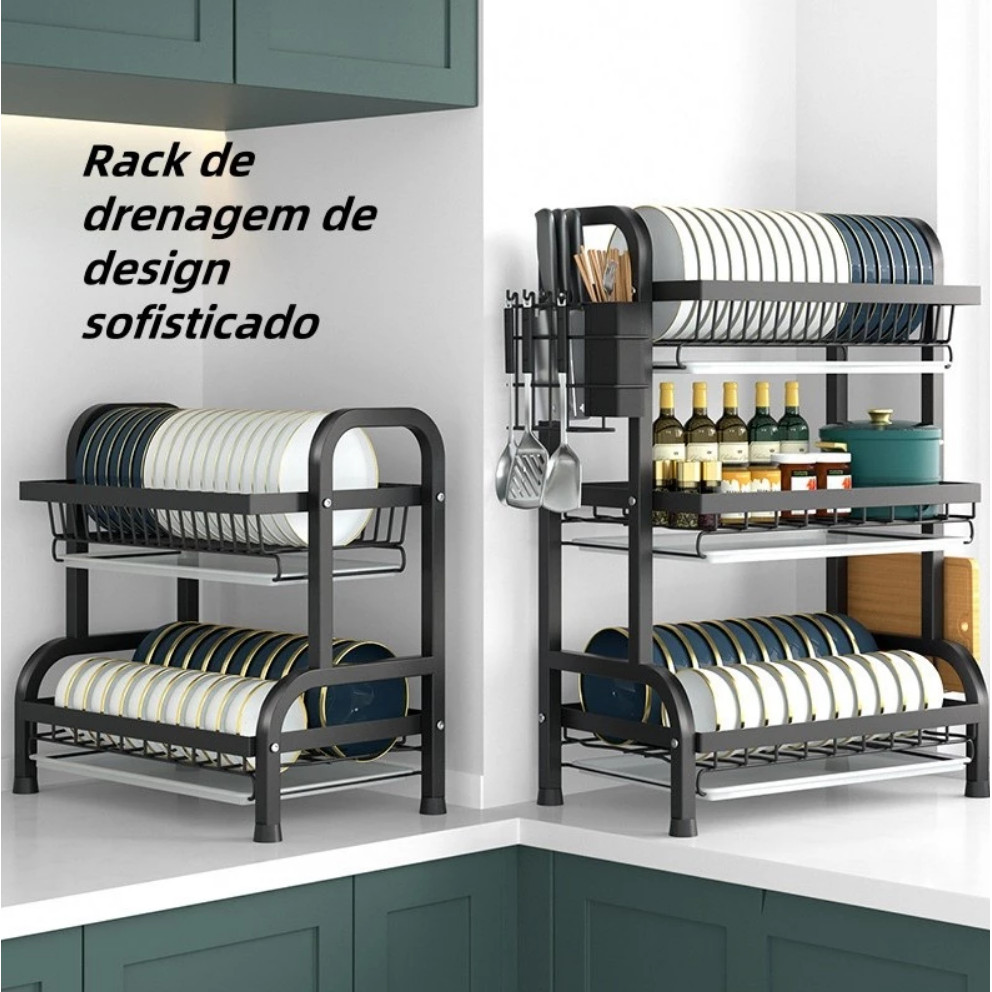 Escorredor de Louças Aço 3 Andares Organizador de Louças 2/3 andar Preto Aço Inoxidável Rack