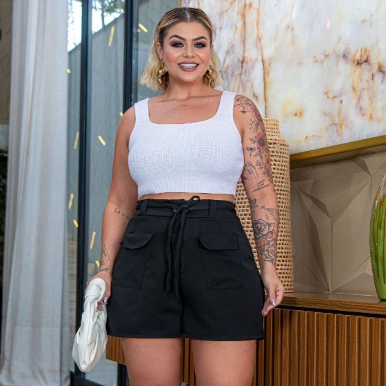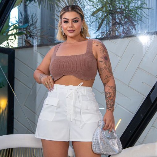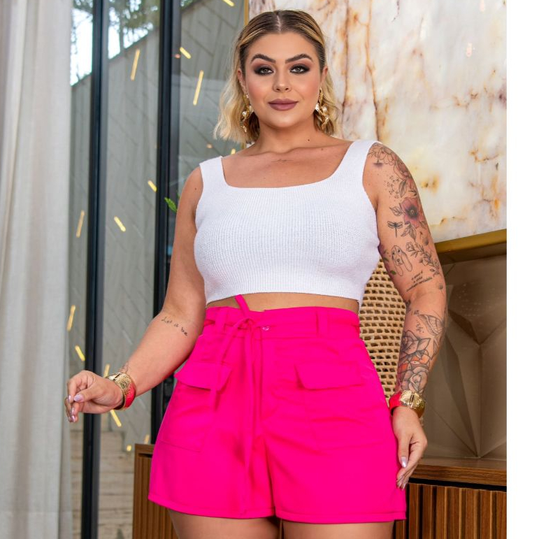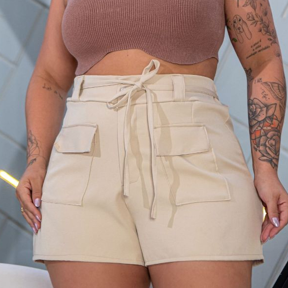 Bermuda Feminina Bolso Frontal Tecido Elegante Alfaiataria Social Plus Size 48 ao 58 All Curve