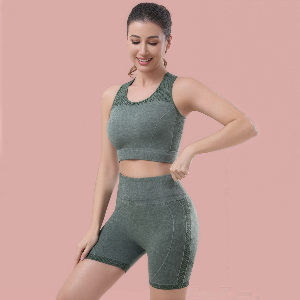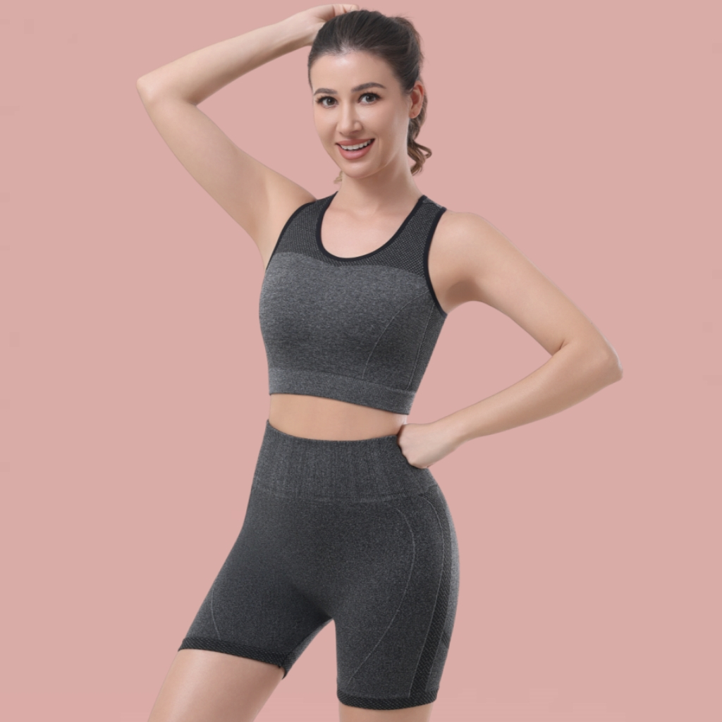 Z&D Lingerie Conjunto Fitness Sem Costura Feminino Academia E Yoga Shorts Cintura Alta Levanta Bumbum Top Sem Bojo