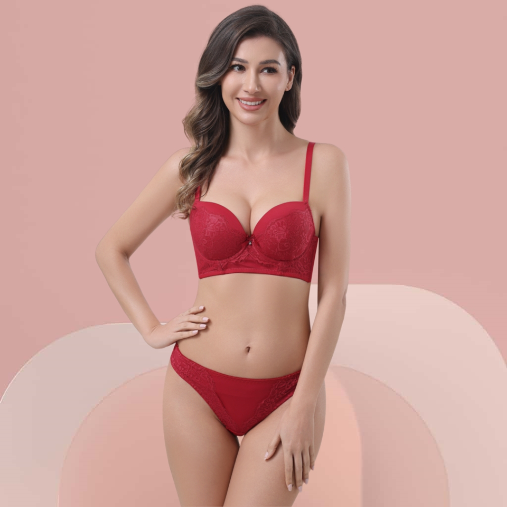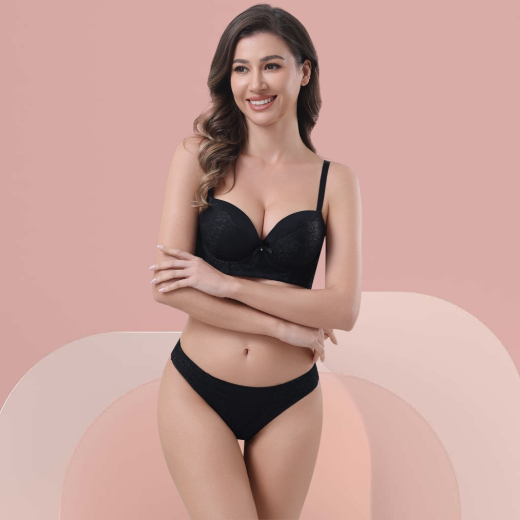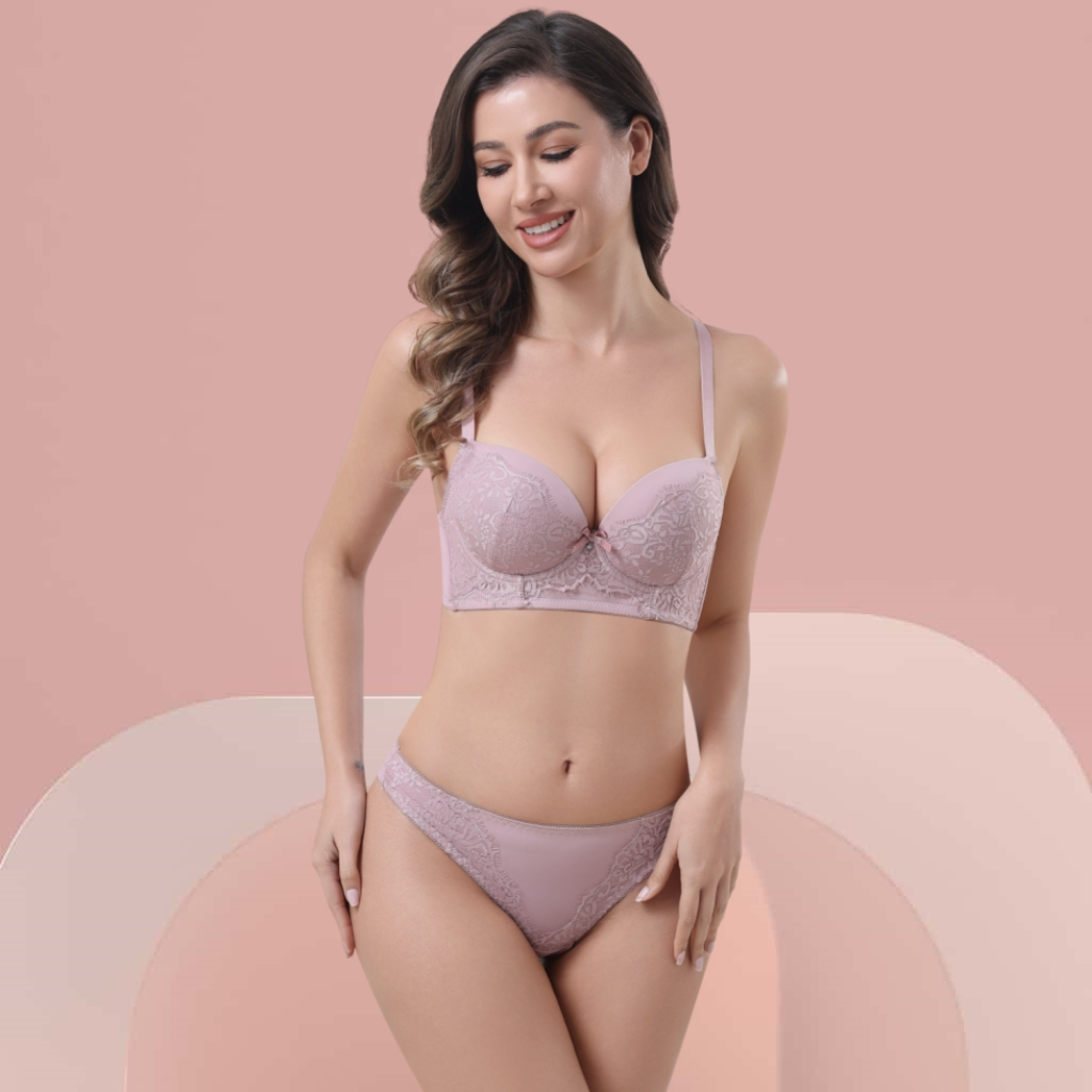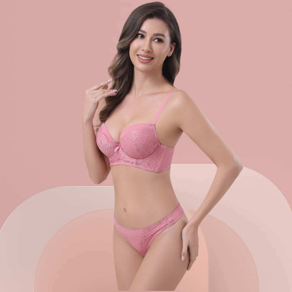 Z&D Lingerie Conjunto Com Aro Com Renda e Bojo Calcinha Tanga 8055